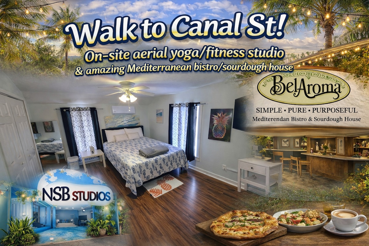 ¡El paraíso está justo enfrente de este estudio súper lindo y cuidadosamente amueblado con habitación extra! ¡Disfrute del sol, las olas y los espectaculares amaneceres! 3 minutos a pie del océano, restaurantes/bares y alquiler de SUP/tablas de surf. El distrito histórico de NSB está a menos de 2 millas donde la avenida Flagler llena de acción y la pintoresca calle Canal ofrecen festivales, vida nocturna, boutiques, alquiler de kayaks/bicicletas, galerías de arte, música en vivo, spas, parques, yoga, tiendas de antigüedades, museos, excursiones en barco y restaurantes fabulosos. ¡Es la hora de la playa!😃
