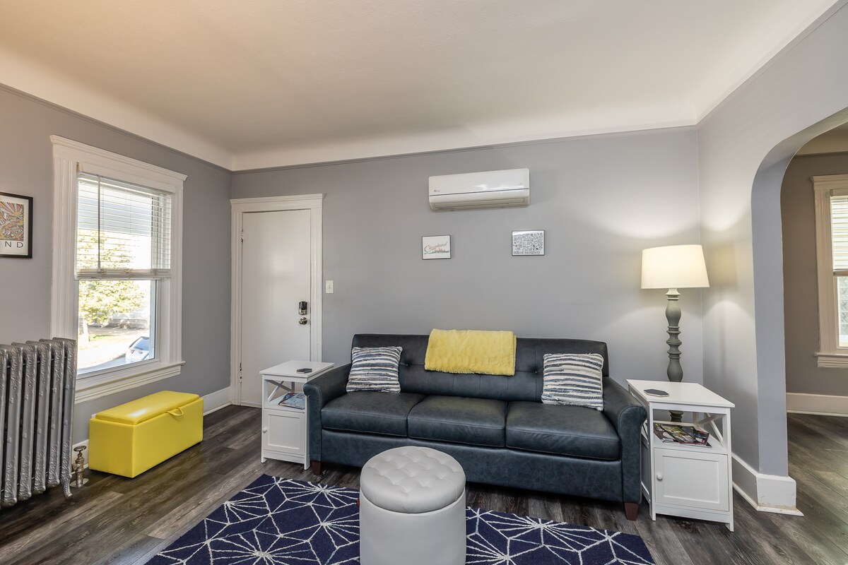 Este encantador apartamento construido en 1920, ubicado en un barrio histórico de clase trabajadora de Cleveland, ofrece una mezcla perfecta de carácter histórico y comodidades modernas, ideal para tu próxima escapada a Cleveland. - Estación de trabajo dedicada con un monitor de computadora. - Estacionamiento de hasta 2 autos fuera de la calle. - Aire acondicionado centralizado. - ¡Los perros son bienvenidos! Tarifa por mascota de 50 $ por perro por estancia. Lo sentimos, no hay gatos. - No se permiten huéspedes no registrados durante la noche. NO se permiten fiestas ni reuniones - A 5 minutos del centro de Cleveland.