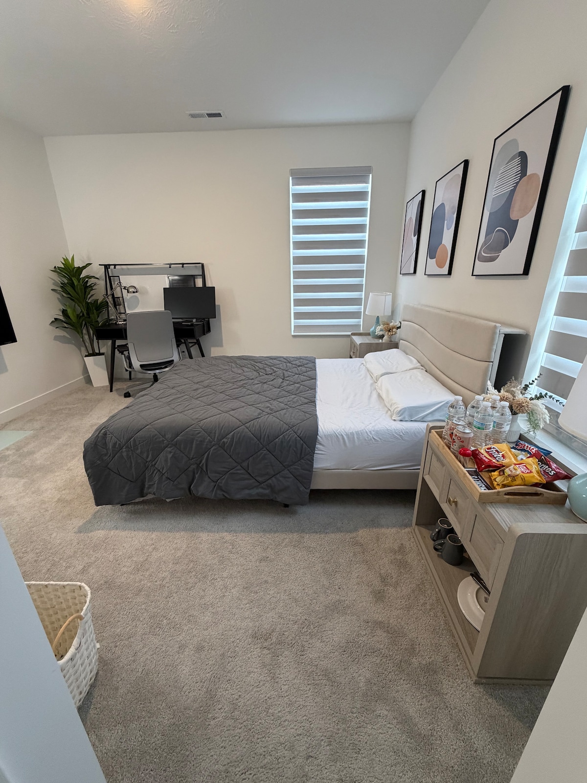 Amplia casa con 3 niveles y mucho espacio de entretenimiento al aire libre. Fácil acceso a todo desde esta casa céntrica. La casa cuenta con colchón Tempur-Pedic con bases ajustables en los dormitorios principales en el primer y segundo piso. Muebles cómodos y acogedores de Smith Brothers y Lazy Boys en los 3 niveles. La casa cuenta con televisores Roku en todas partes y un gran televisor Roku perfecto para una noche de cine en el sótano. El patio cuenta con una Big Green Egg XL, una estufa individual y acogedores asientos al aire libre.