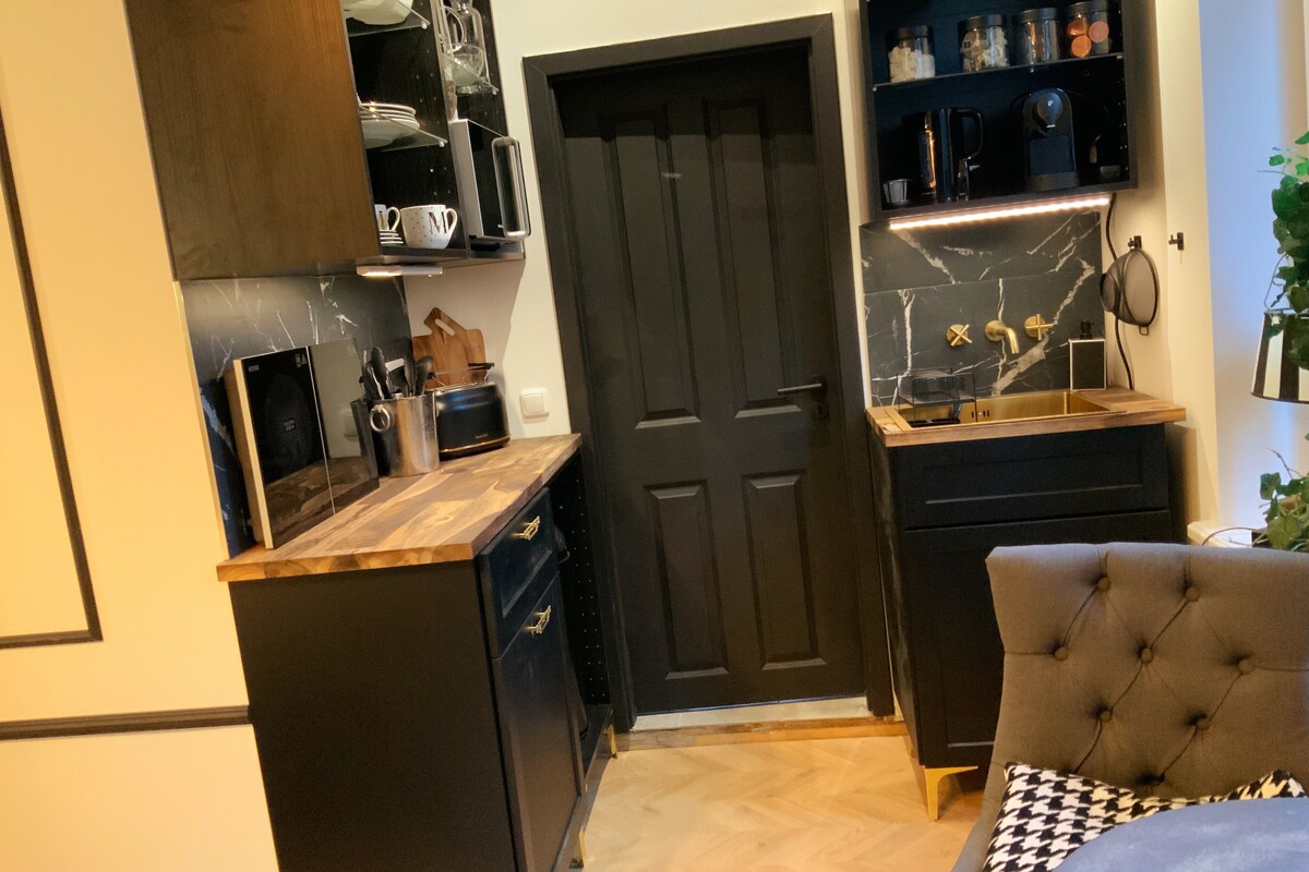 Alojamiento elegante con todas las comodidades. Ideal para viajes cortos o para estancias de negocios. El apartamento está muy céntrico y hay aparcamiento gratuito. Todas las tiendas están a poca distancia a pie. La unidad ofrece una cómoda cama doble, una pequeña cocina americana con nevera, placa de inducción doble, horno/microondas y cafetera (cápsulas). El amplio baño está decorado en un estilo vintage moderno.