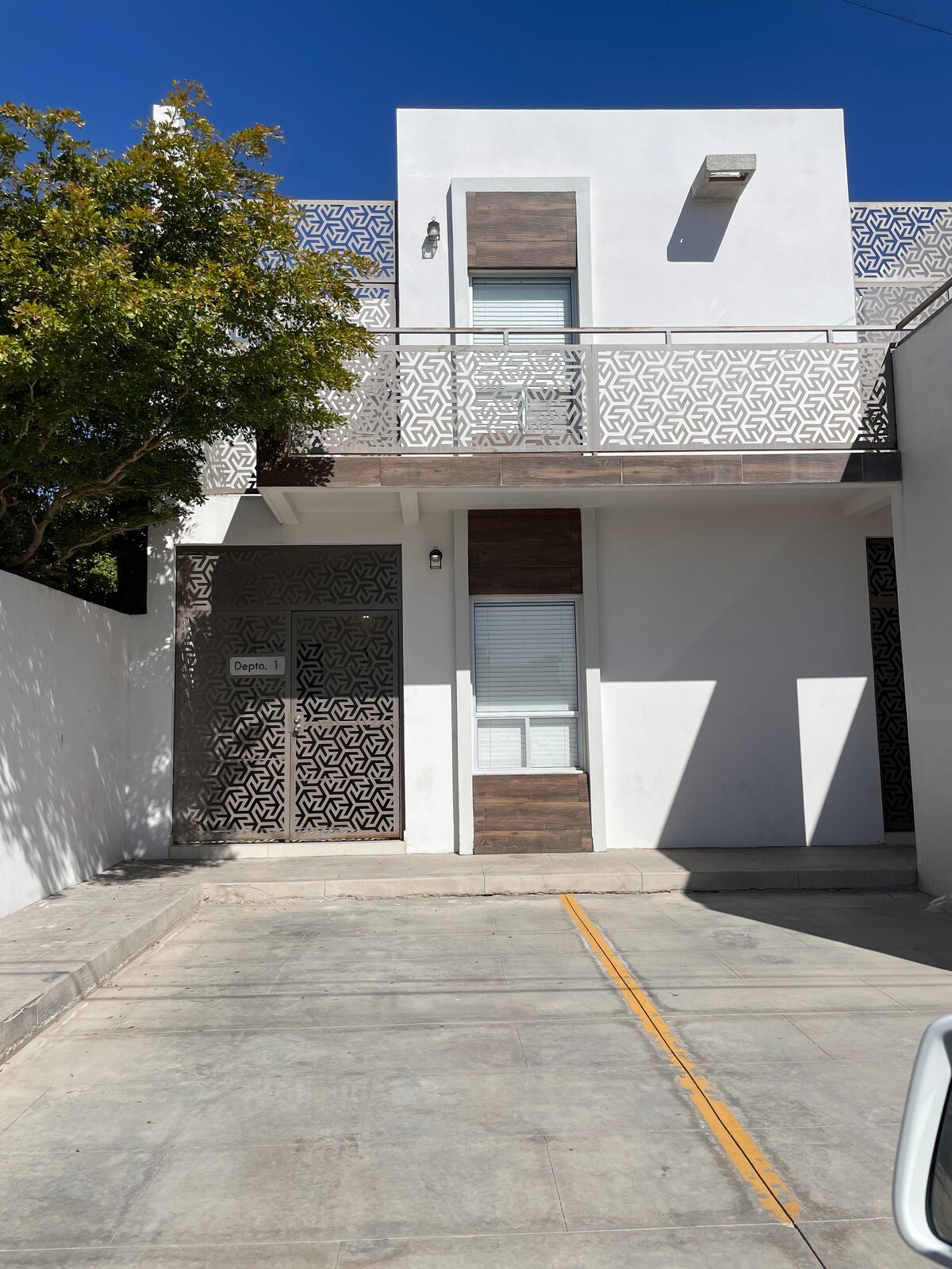 Apartamento espacioso y colorido con 2 recámaras y baños privados, aire acondicionado en cada habitación, cocina completa y estacionamiento seguro. Hermosamente decorado con encanto mexicano. Ideal para pacientes dentales o familias. Incluye lavadora/secadora GRATIS junto al porche. A solo minutos de la frontera y clínicas. Espacio limpio, seguro y con total privacidad para relajarse y disfrutar de Algodones.