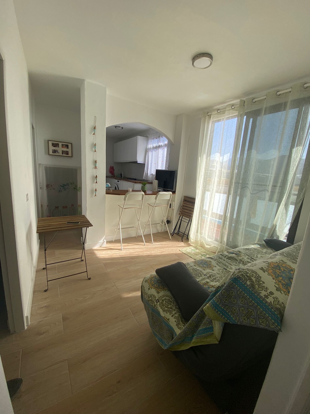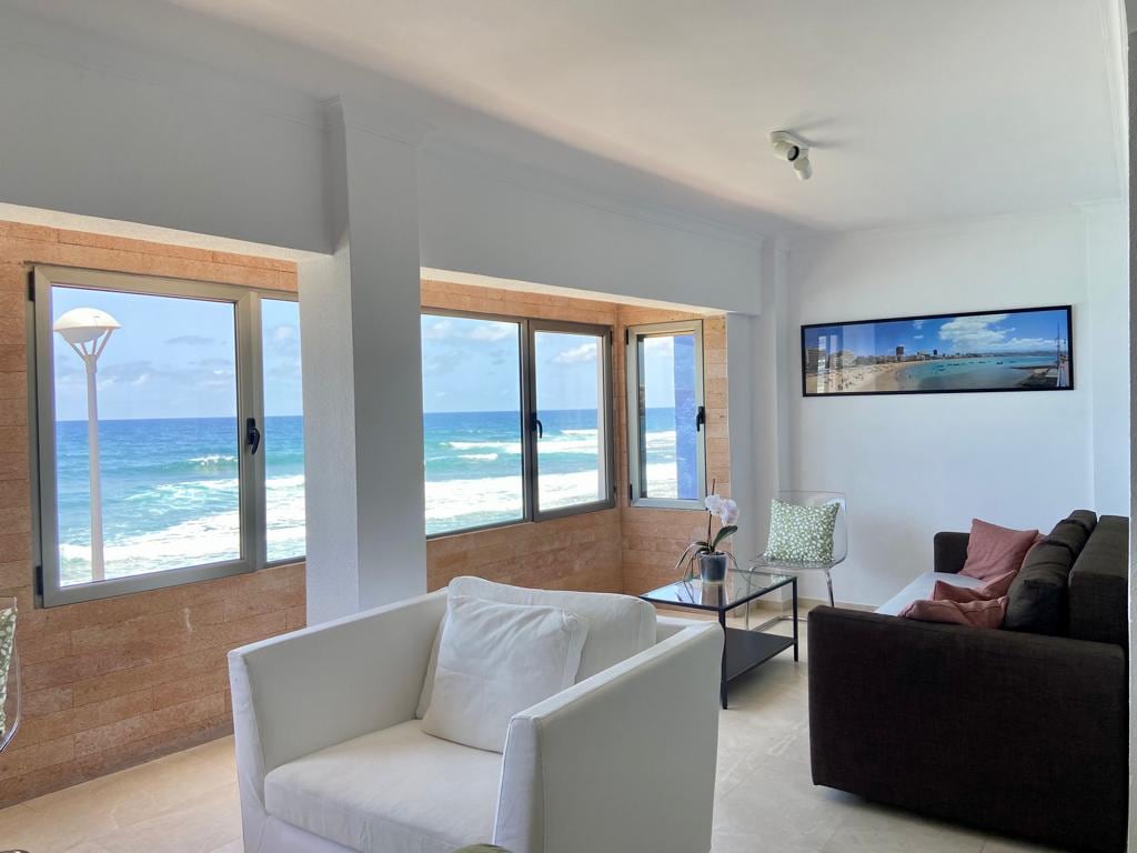 Un precioso apartamento de diseño, recientemente renovado con con impresionantes vistas de atardecer sobre el Océano desde su terraza. Primera línea al mar. Después de un largo día en la naturaleza, descansa en la cama King size (180x200cm) ----- A lovely apartment recently renovated with stunning views of the sunset, first line over the ocean from the terrace. Relax while reading, eating, or doing yoga. After a long day in nature, rest on the King size bed (180x200cm)