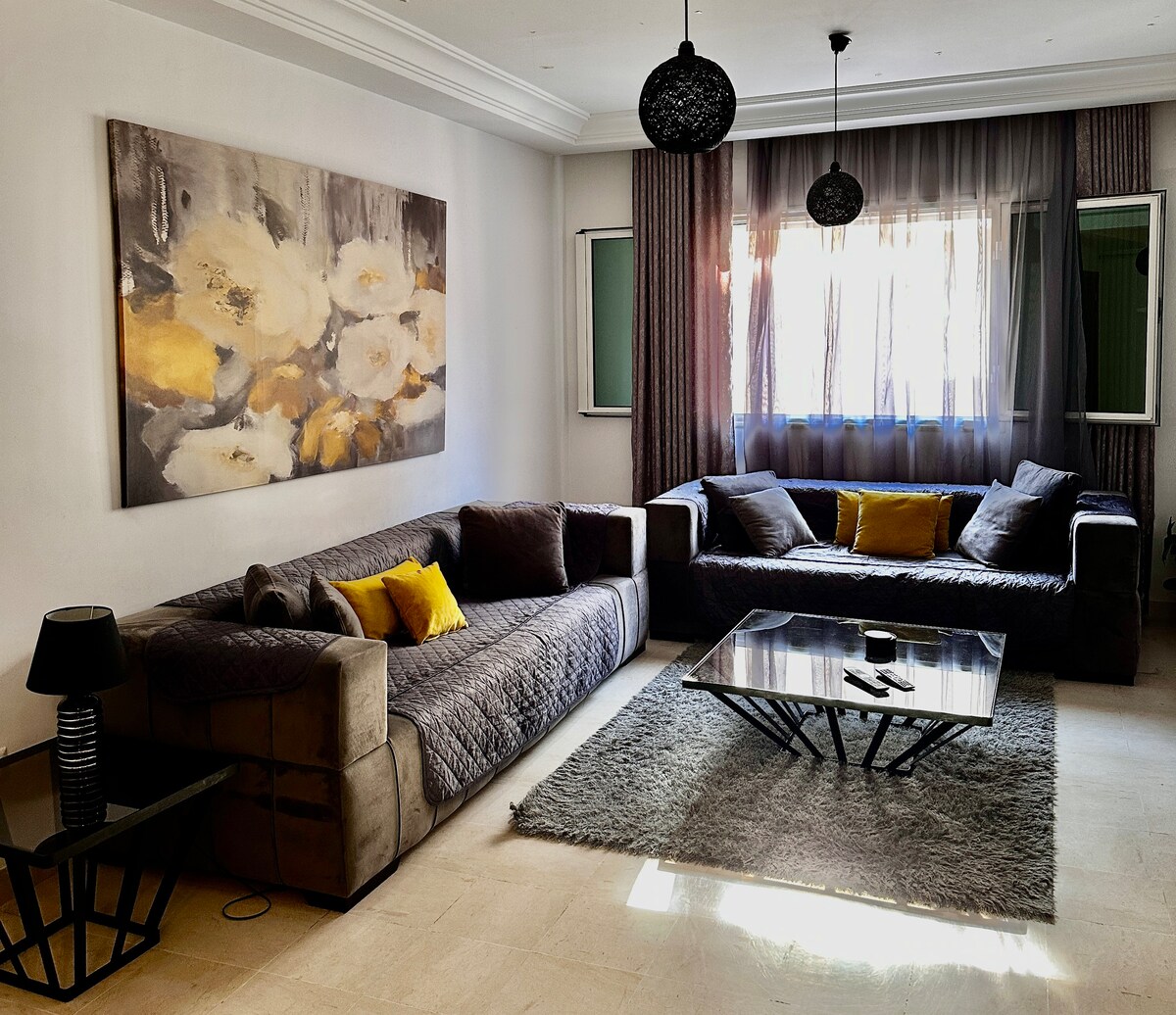 Lujoso apartamento de 150 metros cuadrados ricamente amueblado situado en una zona residencial segura y muy tranquila en La Soukra con entrada independiente. A 10 minutos del aeropuerto de Túnez-Cartago, a 15 minutos de La Marsa, Sidi Bou Said y Cartago, a 5 minutos del hipermercado Carrefour. a 15 minutos del centro de la ciudad de Túnez. También disponemos de otro apartamento Airbnb (S+3) situado en la misma planta. Aquí está el enlace: www.airbnb.fr/h/seifhome2
