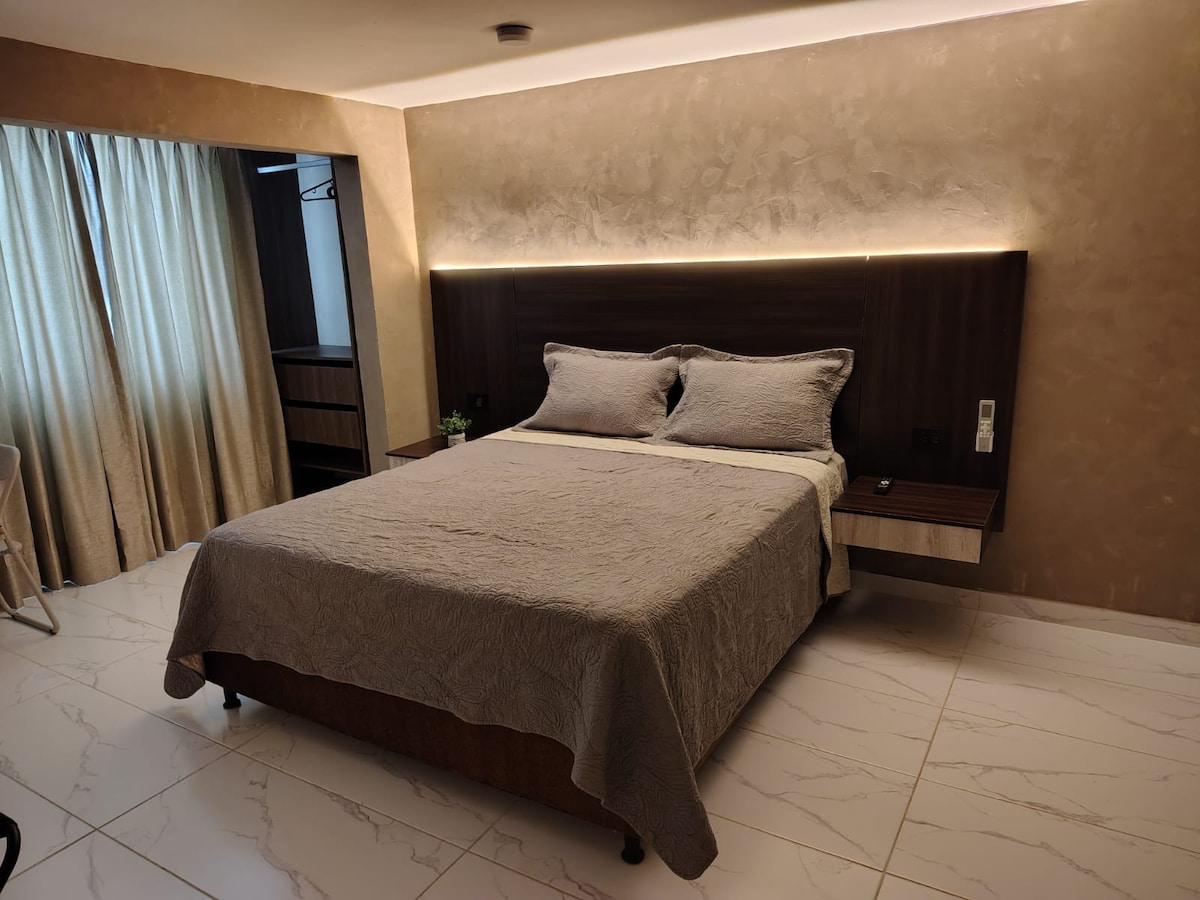Hermoso apartaestudio, completamente independiente y completamente para el huesped, una cama doble, un sofacama, un baño, aire acondicionado, cocina completa y equipada, barra desayunadora, área de labores con lavadero, nevera, Internet, Televisor Smart, Tvcable, Netflix, Disney+, limpieza semanal gratuita para estancias largas si lo solicita.