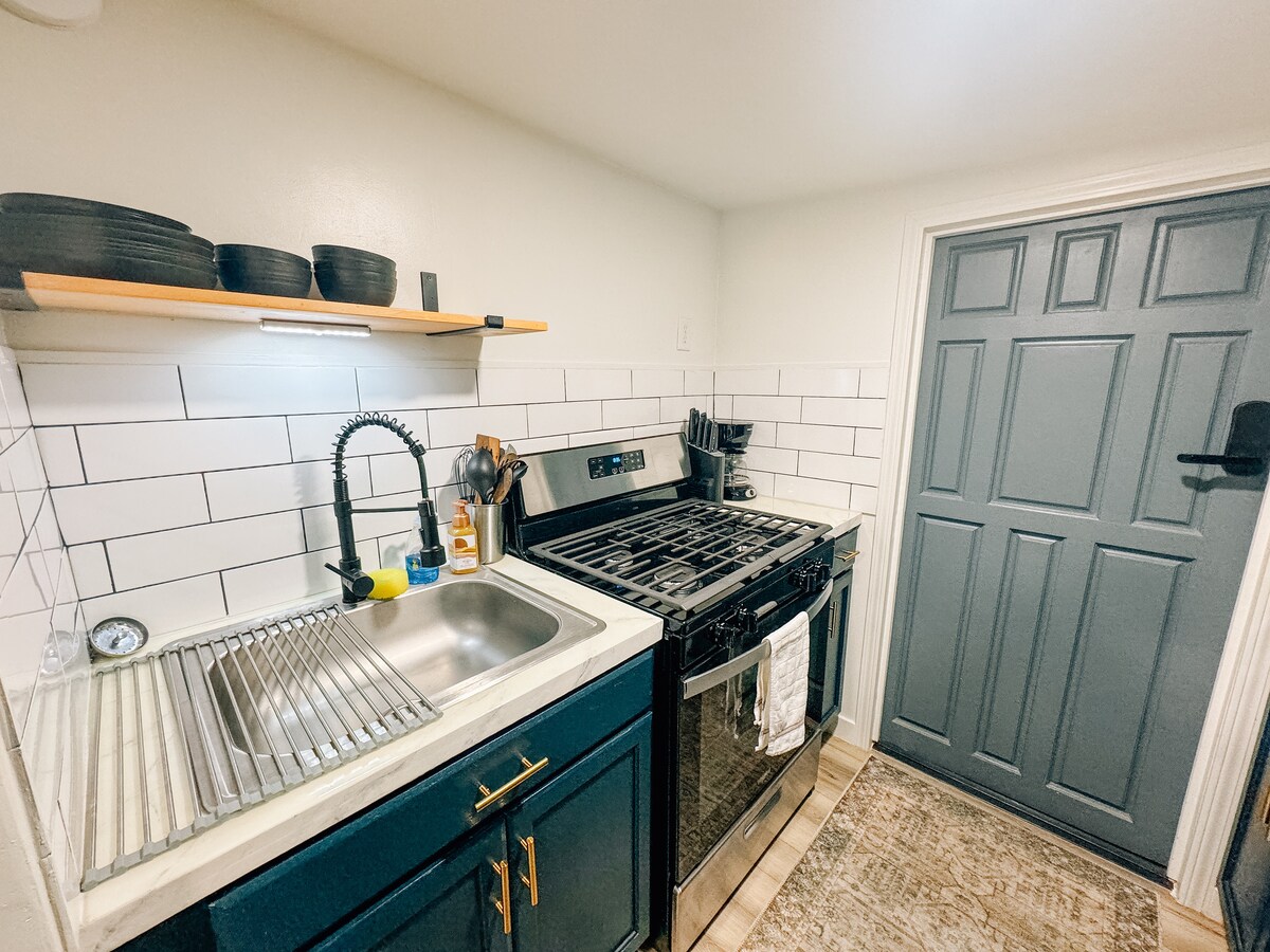 Casita del Arco is a bold and charming one-bedroom duplex in Central El Paso, named for its stunning arched window and desert views. Thoughtfully restored, it blends original details with playful, modern design—vaulted black ceilings, original tiled fireplace, and bright accents throughout. Walk to Memorial Park and the Rose Garden, or relax in this sunny, artful space with a private entrance and shared front porch. If you're traveling with friends check out our adjacent unit, Casita Tierra Rosa