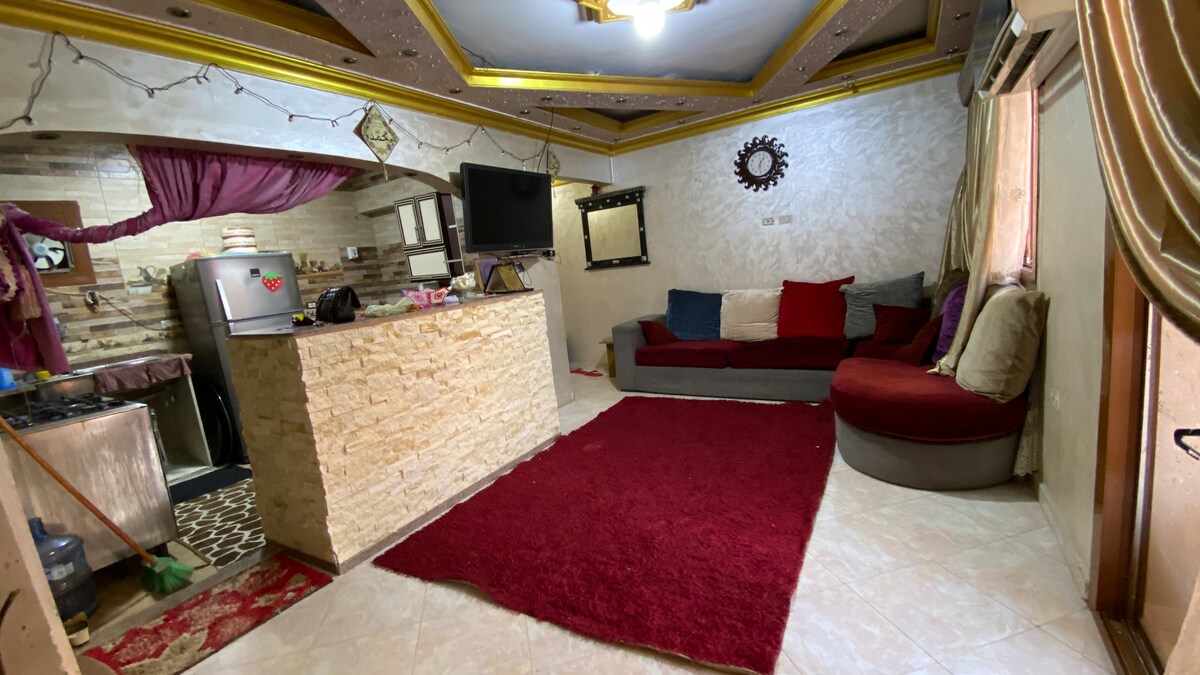 Family house in a small town in Egypt.we are half an hour from downtown.you are 15 minutes away from the Nile.Our family house is big ,nice view from terrance.you can have access to internet.You can shop and visit one of old areas of city built by Mohamed Ali,you go on Faluca and Nile cruise trip. In the evening, you can go out see our night life.