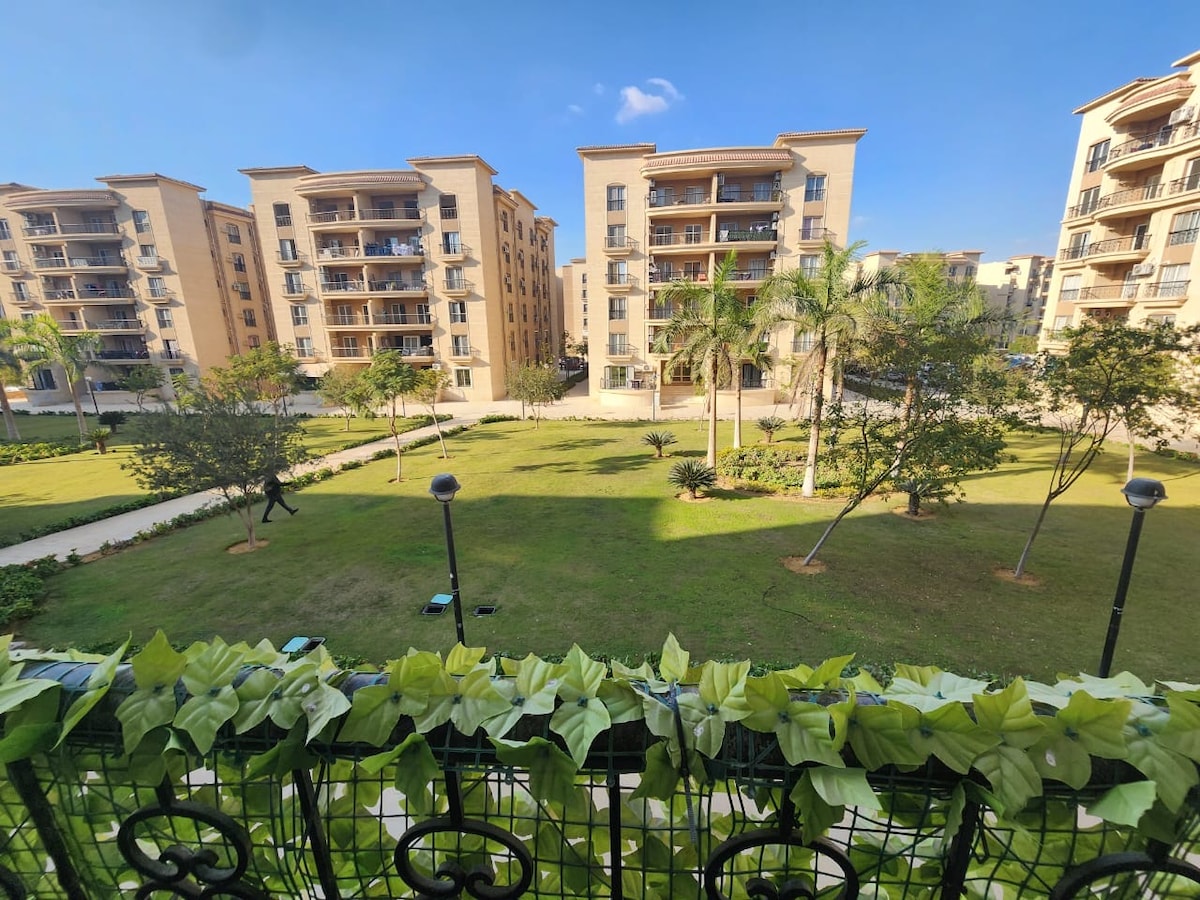 🌿 ¡Te damos la bienvenida a tu escapada tranquila! 🌿 • 🛏️ 2 dormitorios serenos + recepción tranquila, ideal para familias o amigos. • ❄️ Aire acondicionado para una comodidad fresca en días cálidos • Decoración ✨ relajante y ambiente acogedor que se siente como en casa • 🌳 Tranquilas vistas al jardín para descansar y relajarse • Balcón ☕ tranquilo para comenzar las mañanas a la derecha. • A 🛍️ 5 minutos del centro comercial Rehab, The Market y Food Court. • A ✈️ 15 minutos del aeropuerto.