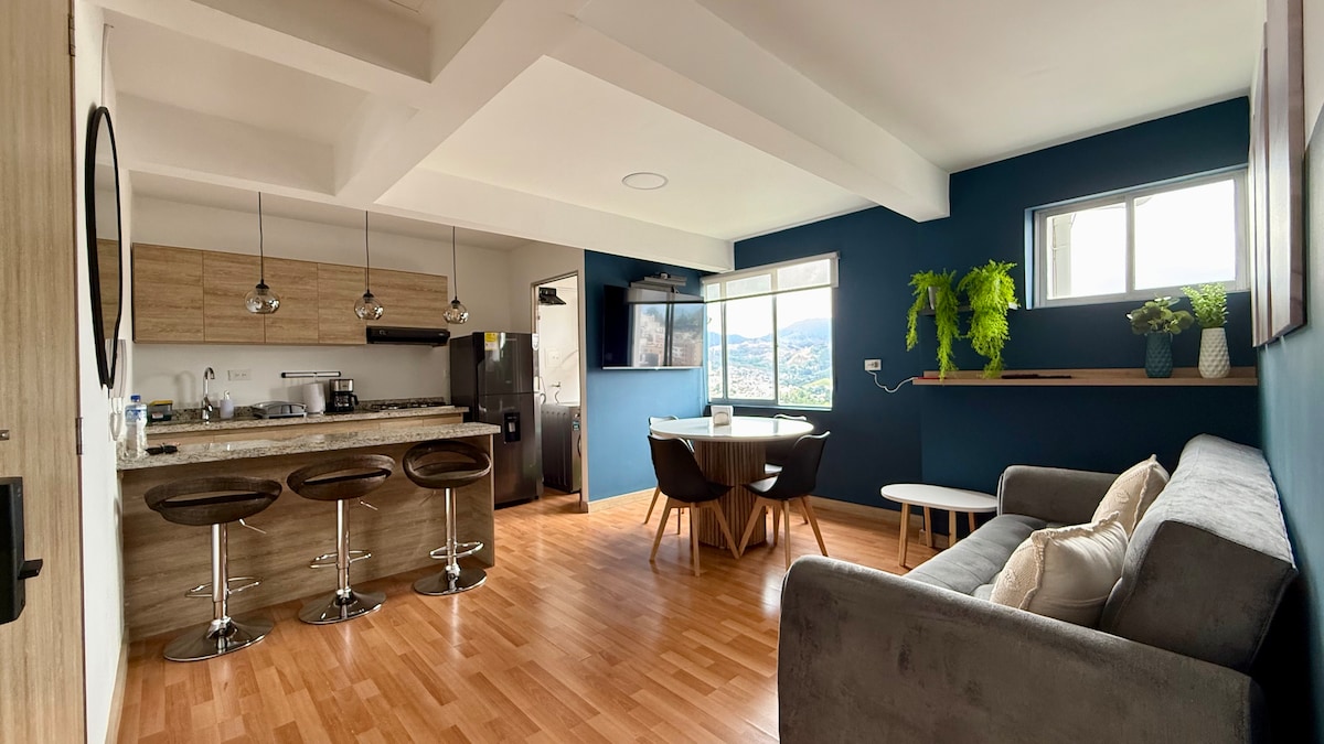 Bienvenido a nuestro Apartamento con un estilo único y especial para ti, lo que lo hace realmente encantador y seguramente no te vas a querer ir. Cada espacio lo realizamos pensando en tu comodidad y bienestar para que te sientas como en casa y con todas la amenidades que necesitarás durante tu visita. Estamos ubicados al frente del centro comercial mall plaza, restaurantes, supermercados de cadena, además del mall tenemos cerca: Cable plaza, Milán, el cable, los Yarumos, entre otros.