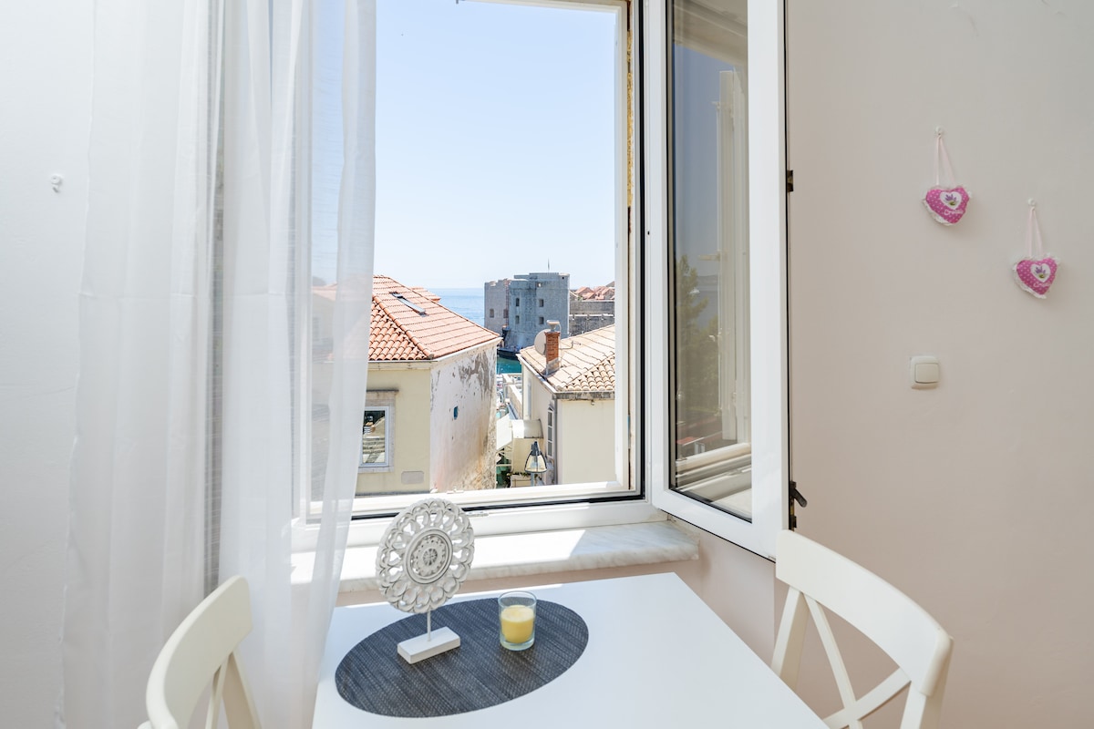 Este acogedor estudio recientemente renovado se encuentra en el centro de la ciudad, a 3 minutos del casco antiguo. ¡Ubicado en una zona muy tranquila y pacífica, es un punto de partida perfecto para explorar la ciudad a poca distancia a pie! Teleférico, casco antiguo, playa de Banje, isla de Lokrum, supermercado, museos, bares, restaurantes, clubes, todo está a 15 minutos a pie. El espacio se complementa con un balcón privado con vistas al mar donde puedes disfrutar de tus desayunos o tomar una copa de vino por la noche.