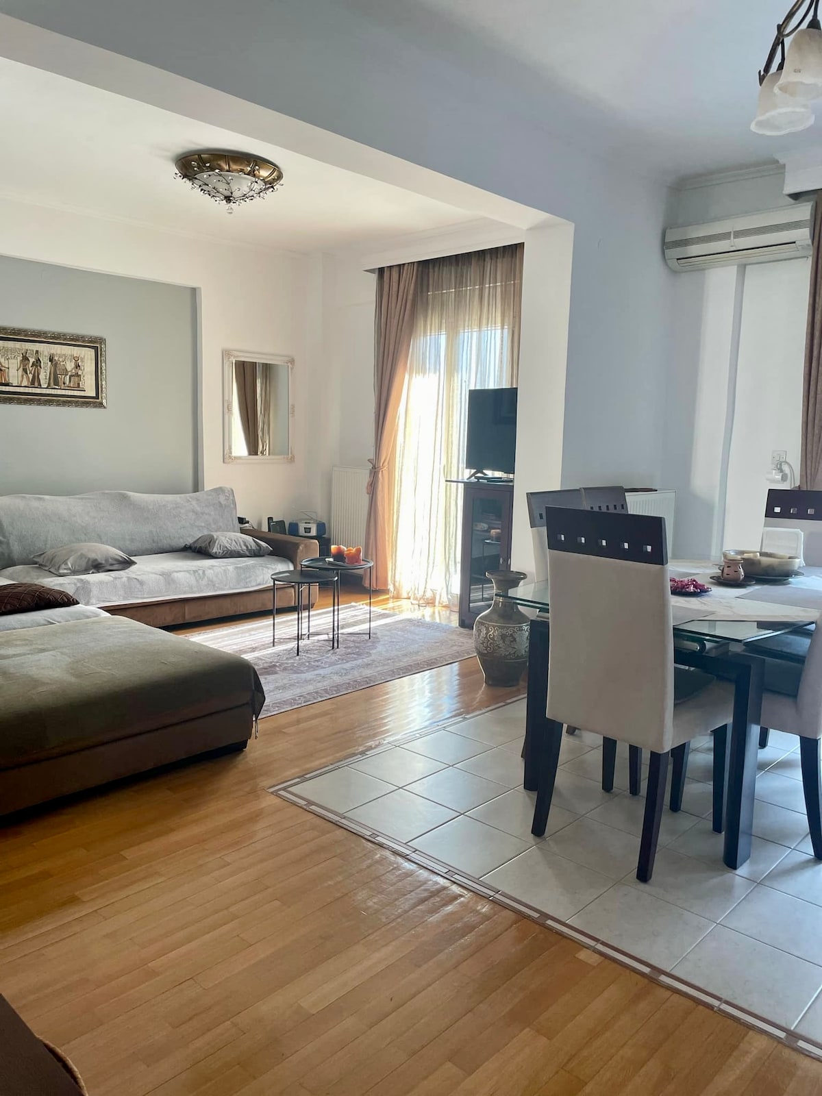 Disfruta de tu estancia en el apartamento recientemente renovado en la zona de Stavroupoli, que limita con Evosmo. Cualquier cosa que necesite el visitante: tiendas, vida nocturna, restaurantes, cafeterías, parada de autobús, supermercado, etc. están a poca distancia a pie. El centro de la ciudad está a 12 minutos en coche y a 15 minutos en autobús. Nuestro objetivo es que te sientas cómodo como en tu casa. Ideal para tu visita de placer o de negocios.