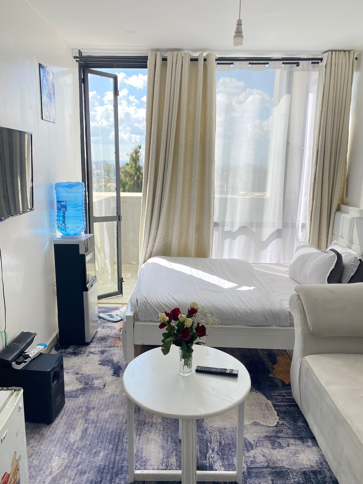 Sanan Studio in Nairobi's Heart Escape to our chic studio, in vibrant Nairobi with African decor touches. This cozy retreat offers a perfect blend of style, comfort, and convenience. The studio is conveniently located close to JKIA airport and the SGR terminus and is near supermarkets, shops and transport availability. It offers secure parking and 24/7 security. Perfect for: -Business travelers -Couples -Solo adventurers -Travellers on transit Book now and experience home away from home!