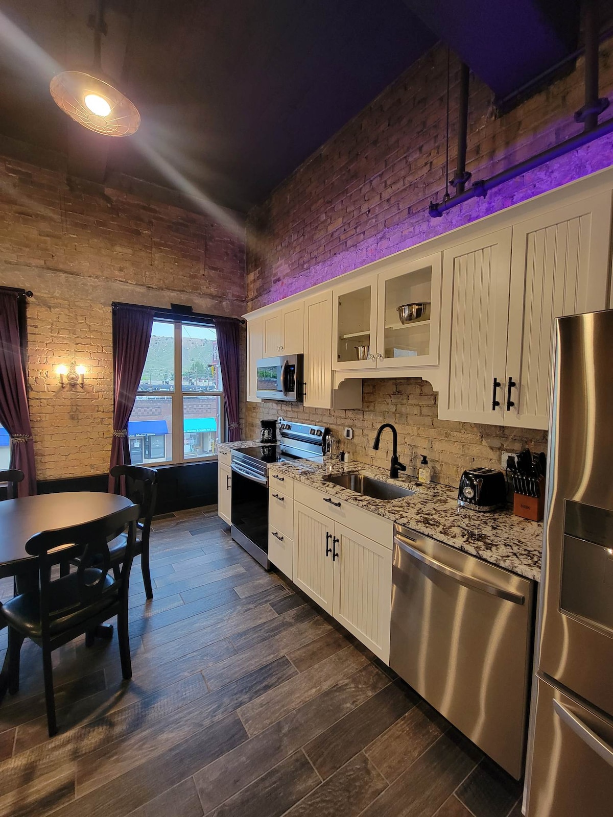 ¡Te damos la bienvenida a Key Suites! Estamos situados en el segundo piso de los edificios recientemente restaurados de Helper State Bank & Helper Drug Co. Disfrutarás de una vista espectacular de Main Street y del patio ferroviario. Disfruta del patio compartido en la azotea y relájate con los sonidos del río. Esta suite de dos dormitorios con una cama tamaño king y queen y cocina completa seguramente hará que tu estancia en Helper sea cómoda. ¡Una propiedad de Stay Helper! Más información en el sitio web de Stay Helper. @stay.helper