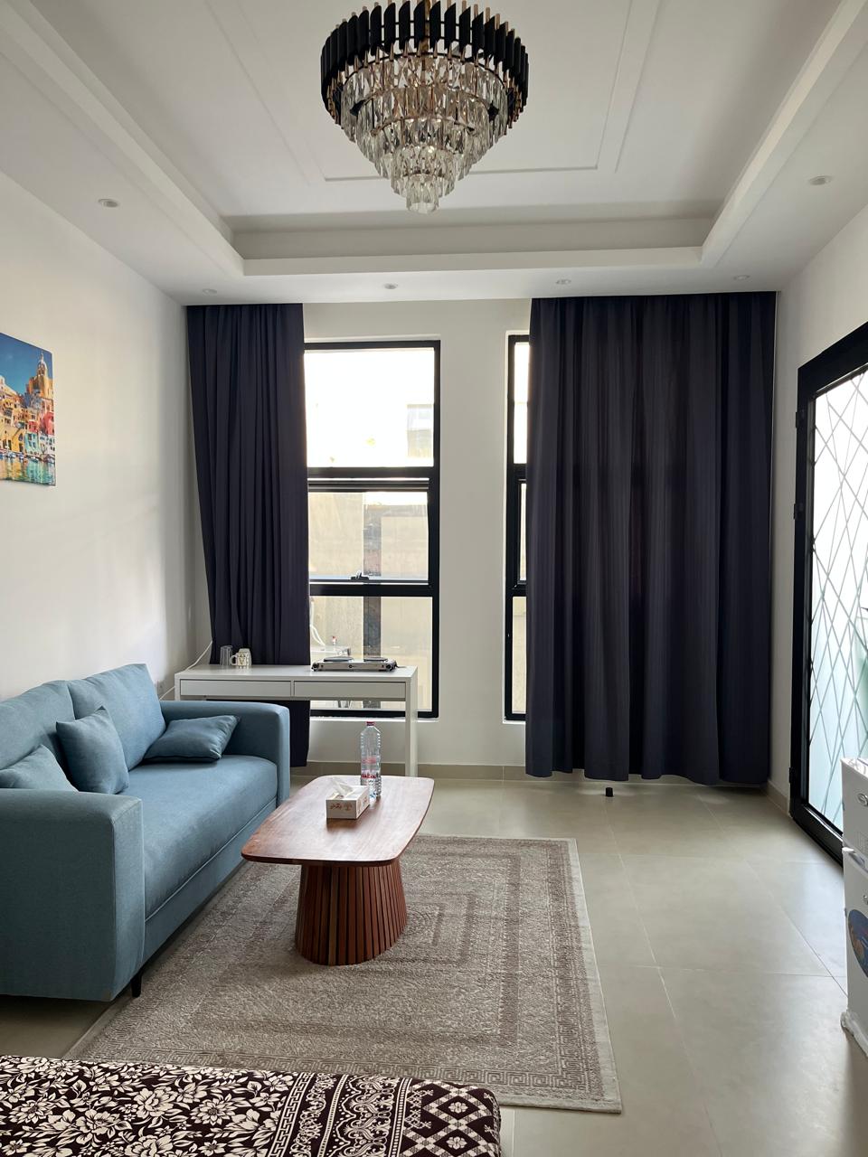 Es un estudio moderno con sede en Ajman Alalia, cerca de la carretera principal, de fácil acceso. Está a unos 35 minutos del aeropuerto de Dubái, a 25 minutos del aeropuerto de Sharja, buena ubicación. Tienen una cocina separada, baño separado y una gran cama tamaño king con sofá y TV.