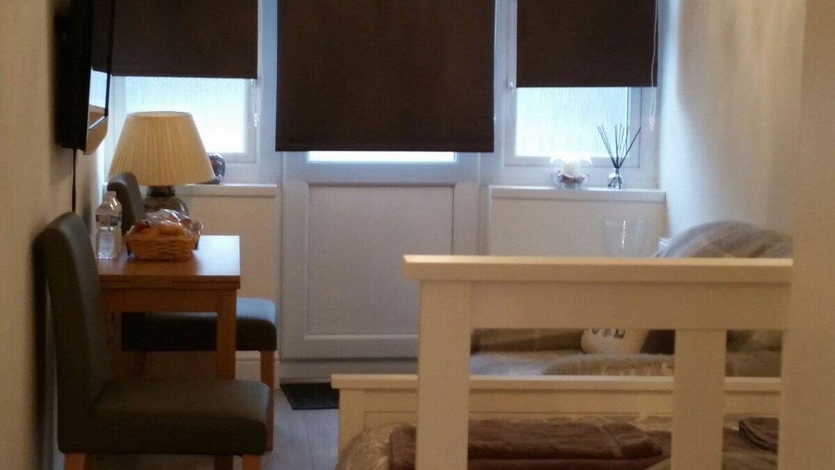 Apartamento independiente de 1 dormitorio con entrada independiente de la casa principal. Recién reformado en octubre de 2017 con todos los contenidos nuevos. Cocina totalmente equipada con todos los electrodomésticos: vitrocerámica, horno, lavadora, secadora, microondas y nevera con congelador. Ducha grande, inodoro y lavabo. 1 cama doble, 1 sofá de dos plazas que también se puede plegar hasta convertirse en una cama individual. Televisor con Freeview montado en la pared. Una mesa/escritorio para comer y se puede utilizar como escritorio de trabajo. Wifi gratuito, calefacción, agua caliente y electricidad.