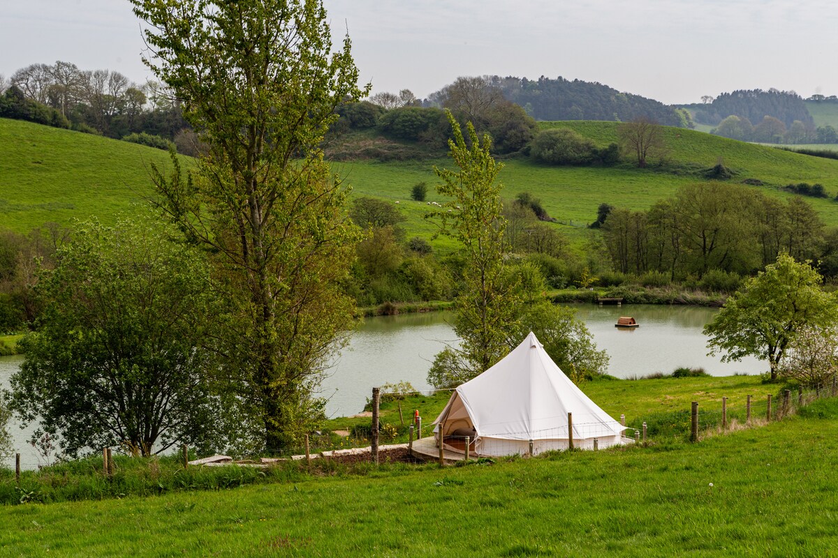 Cosy Bell Tent with King Bed, Fire Pit & Views