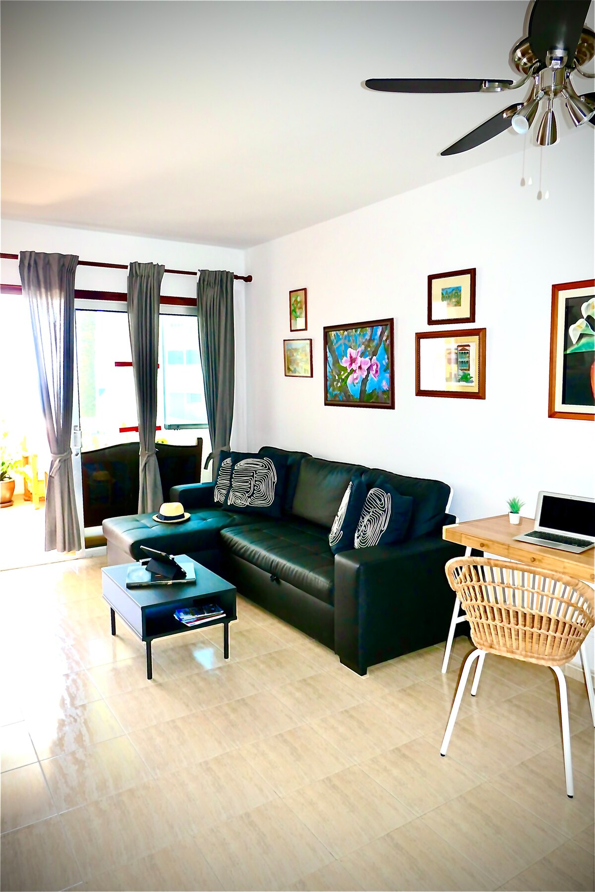 Recent gerenoveerd appartement met 1 slaapkamer. Centraal gelegen aan de doorgaande weg tussen strand (300m) en winkel en uitgaanscentrum Yumbo (400m). Gelegen in een kleinschalig complex (gerenoveerd in 2022) met zwembad. Vanwege de ligging, onbeperkt internet (glasvezel), wasmachine en TV (incl. chromecast en TV) en goed voorziene keuken (oven, vaatwasser, vriezer etc) geschikt voor zowel een kort als langer verblijf.