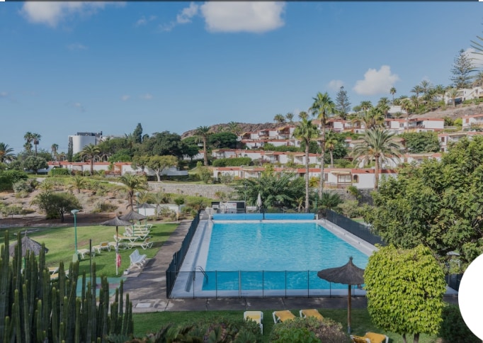 Bungalow con 2 dormitorios de 50 m2 útiles .A 2 min. del Yumbo Center y 25min.desde aeropuerto.Ideal para desconectar y disfrutar de unas hermosas vacaciones, nevera, cocina eléctrica, cafetera, tostadora, microondas , wifi y caja fuerte. Jardín y5 piscinas.
