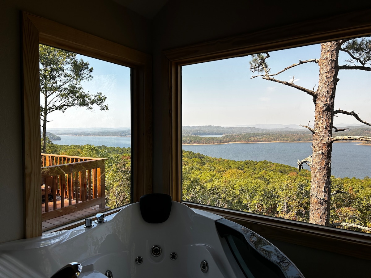 La casa del árbol de Crockett es una experiencia de alojamiento increíble con una vista de 180 grados del hermoso lago Greers Ferry. El refugio privado del bosque para dos adultos cuenta con una bañera de hidromasaje para dos personas que te permite ver todo el lago. La casa del árbol tiene una cocina completa con horno, microondas, comedor, chimenea y TV inteligente de 65 pulgadas. El sofá seccional en forma de L con diván se convierte en una cama. La envoltura privada alrededor de la cubierta es enorme y las vistas son espectaculares.