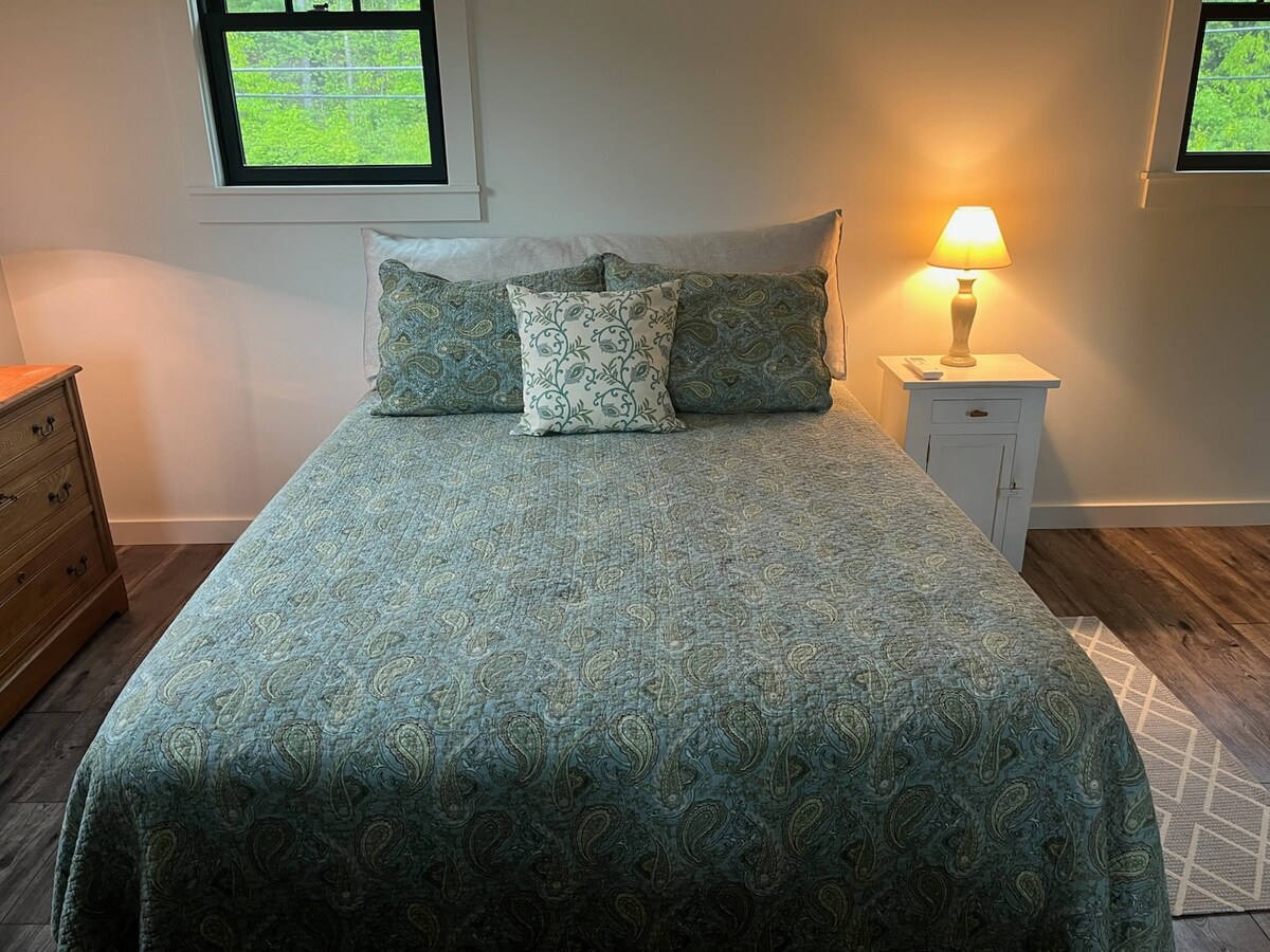 La escapada romántica perfecta/plataforma de lanzamiento para eventos locales. 2 habitaciones privadas, dormitorio principal, sala de estar/dormitorio, con sofá cama de tamaño completo. Además de baño completo, tocador doble y cocina americana. Disfruta de una terraza privada, puertas de entrada y aparcamiento a pocos pasos. Hermoso follaje en temporada, lagos cercanos, parques estatales, raquetas de nieve, esquí de fondo y esquí alpino. A 15 minutos de UNH y a 25 minutos de la costa. Ubicado en una carretera «escénica». Maravilloso para largos paseos mientras disfrutas de la belleza de New Hampshire.