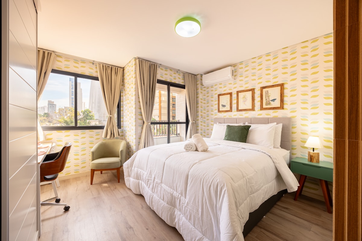 Explora nuestro departamento inteligente y totalmente equipado, perfecto para un máximo de 2 huéspedes. Situado en el corazón de Vila Mariana, el sitio ofrece un ambiente encantador y práctico para tu estancia. Disfruta de una cómoda cama tamaño queen, de alto nivel, wifi, Netflix, aire acondicionado, minibar y cafetera Nespresso y una agradable vista al sol por la mañana. La ubicación es tranquila y segura, a solo 4 minutos del metro. La zona tiene tiendas, gimnasios y hospitales. Ofrecemos pastillas.