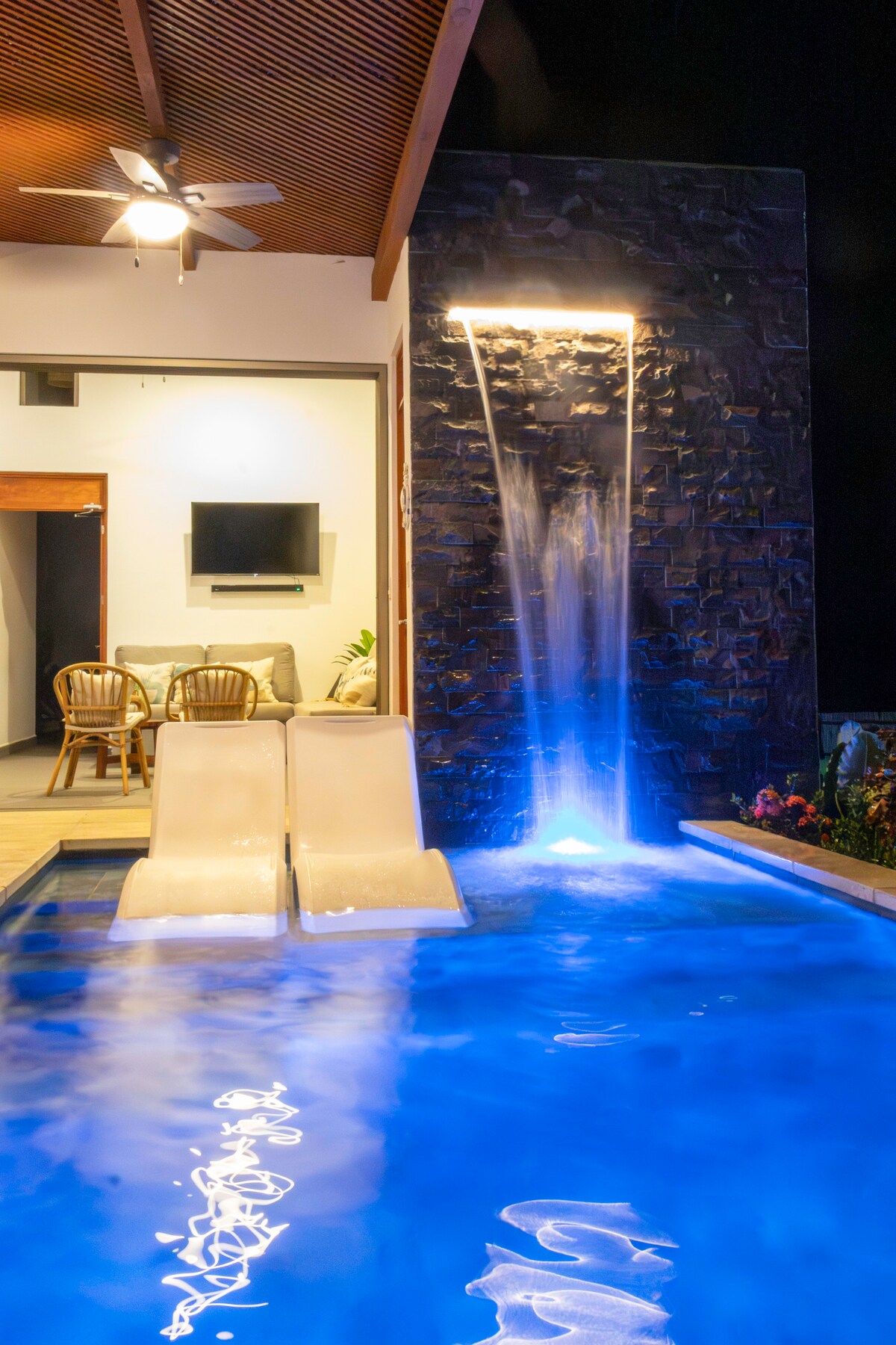 Hola amigos, ya estamos de regreso!! Este lugar único tiene su propio estilo, piscina de laja super elegante, techada y climatizada, la ubicacion es excelente y muy accesible, la casa super espaciosa y con ambientes exepcionales muy bien ubicados, comodidades tales como AC en sala y habitaciones, wifi, television, cable y equipo de sonido interno y bocina portatil, cuenta tambien con una cocina muy bien equipada con lo necesario, y la playa a solo 60 mts. lineales. ¡Esperamos servirte pronto!