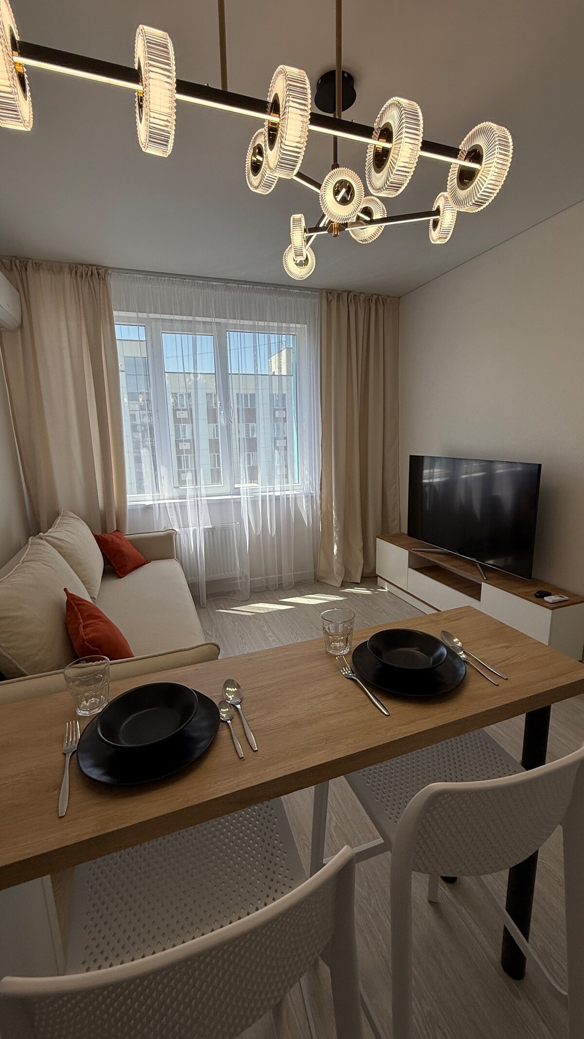 Departamento moderno y elegante en la ciudad, perfecto para relajarse o viajes de negocios. Acogedor dormitorio con una cama grande, cocina totalmente equipada, baño con ducha y todos los servicios necesarios para una estancia cómoda. Wifi gratuito, TV en streaming y aire acondicionado. El alojamiento perfecto para tu estadía Un departamento espacioso con renovación de diseño y un ambiente acogedor. Todos los detalles están pensados hasta el más mínimo detalle: muebles y decoración elegantes, colores neutros y detalles que crean un ambiente de relajación