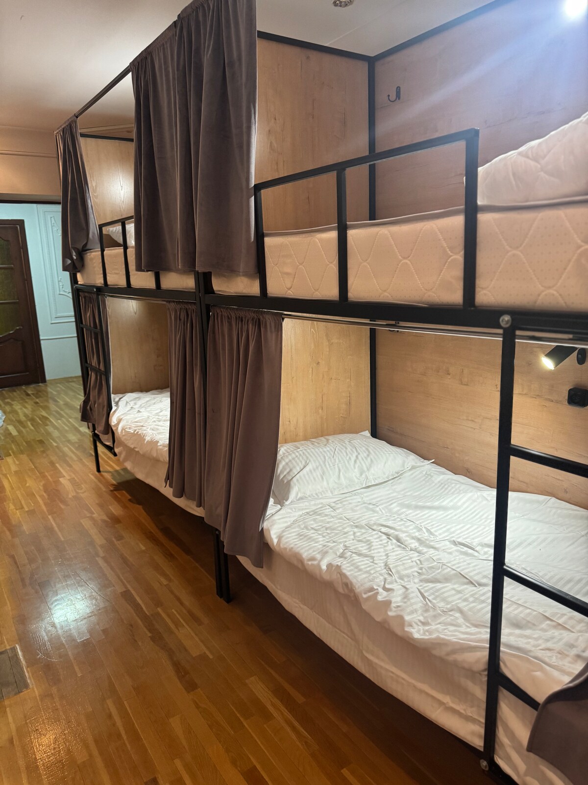 ¡Estamos ubicados en el centro de la orilla derecha! - Zona siempre limpia y acogedora - Techos altos, ventanas grandes. - Camas altas y cómodas con cortinas. - Colchones ortopédicos - Los lugares para dormir están equipados con iluminación, tomas de corriente, USB y tipo-c - Hay habitaciones para mujeres y hombres. (El dormitorio para mujeres tiene su propio baño con ducha y baño) Internet de alta velocidad - área de ocio espaciosa - Las habitaciones tienen armarios personales y escritorio. - Área de cocina - Lavadora y secadora. - Varios baños y duchas