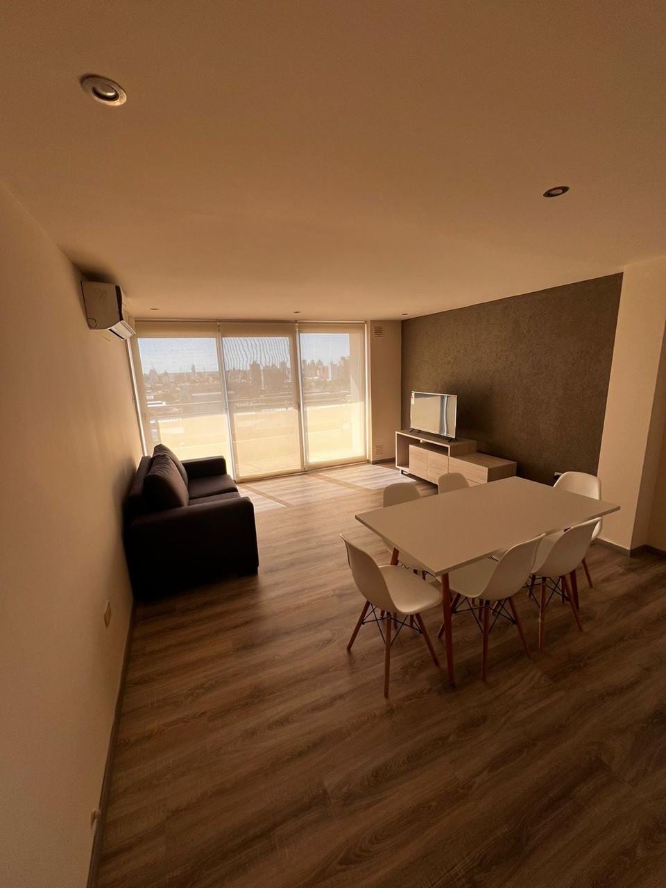 Departamento nuevo, totalmente amueblado, con living-comedor, cocina separada, 1 dormitorio, 1 baño y balcón. Construido en torre con ventanas con doble vidrio en todos sus ambientes. Calefaccion con caldera, radiadores y aires frío. calor. Consultar por lavarropas en estadías largas . Cuenta con seguridad y camaras de vigilancia. Ubicado en exelente zona céntrica a mts. de la Peatonal y de Boulevar Pellegrini y Galvez. Posee cochera privada con control remoto en el edificio, amplia piscina
