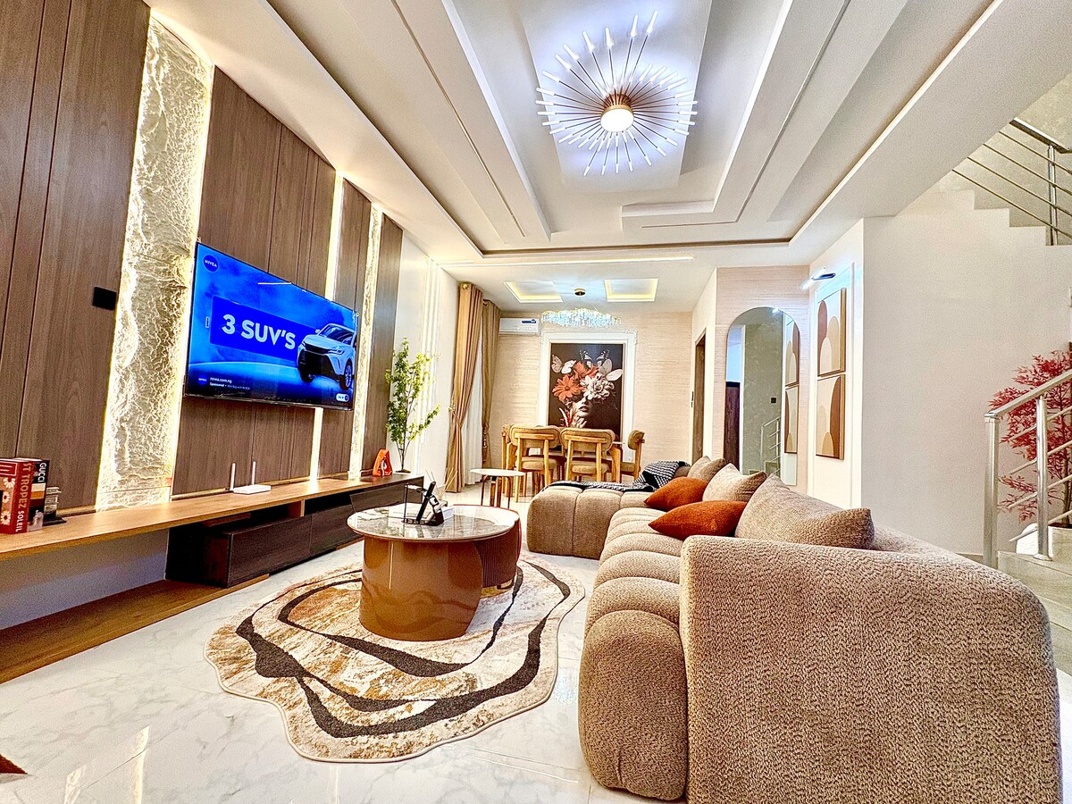 Escape to comfort in this stylish 4-bedrooms, 4.5-bath apartment in Oniru Estate, Victoria Island, Lagos. Enjoy a spacious living room with soft sofa, AC, Wi-Fi, Smart TV with Netflix, and a cozy dining area. The fully equipped kitchen has everything for home-cooked meals. Each ensuite bedroom offers comfort and privacy. Perfect for families, business travelers, or groups seeking luxury, convenience, and 24/7 security in one of Lagos’s most sought-after neighborhoods.