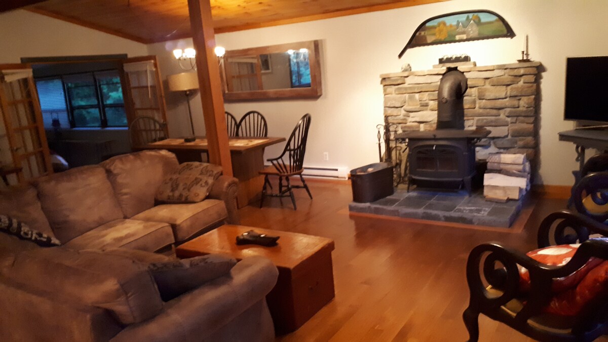 La cabaña está parcialmente AISLADA DE LA RED ELÉCTRICA durante los meses de invierno (del 1 de noviembre al 7 de mayo). En ese periodo, no hay agua corriente, ducha ni baño interior. Se proporciona agua mediante un dispensador de agua/letrina mantenida Sauna y bañera de hidromasaje disponibles todo el año. Nota: En 2025, la bañera de hidromasaje de madera se sustituirá por un jacuzzi spa. Cabaña climatizada con estufa de leña en los meses de invierno y complementada con un calentador mini split. Se proporciona leña/leña para encender. Cabaña ubicada en una propiedad de 1 acre con mucha vegetación y un arroyo, justo frente a una tranquila vía municipal