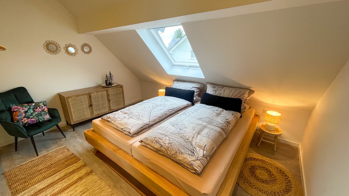 Apartamento en el ático situado en el centro, reformado en 2020, en la histórica ciudad barroca de Ettenheim, ideal para un viaje corto para explorar la Selva Negra y decorado con mucho cariño. Aparque justo en la puerta o siéntese por la noche con una copa de vino de Baden en el jardín de los anfitriones. El apartamento está en el segundo planta y se accede a través de la escalera con entrada independiente. Ideal para 2 adultos + 2 niños. El precio se calcula por persona.