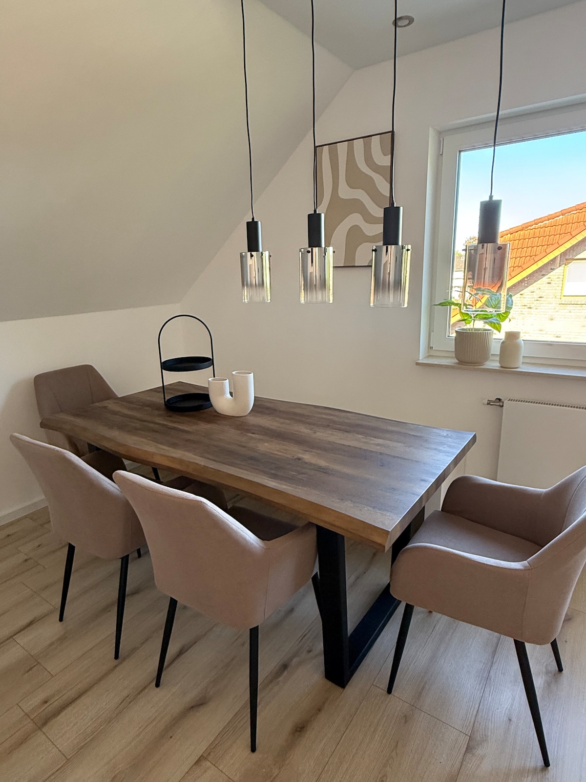 Genieße das einfache Leben in dieser ruhigen & zentral gelegenen Unterkunft. Über den separaten Eingang erreichen Sie unser gemütliches Appartement in der 1. Etage. Die voll ausgestattete Küche mit Backofen & Kühlschrank ist praktisch & funktional. Das hochwertige RUF-Doppelbett 180x200cm lädt zum träumen und entspannen ein. Ein separates Bad mit großem Waschtisch, Spiegelschrank & Dusche bietet Ihnen die nötige Privatsphäre. Weiterhin: Kleiderschrank, Esstisch mit Stühlen, Sofa, Vitrine.