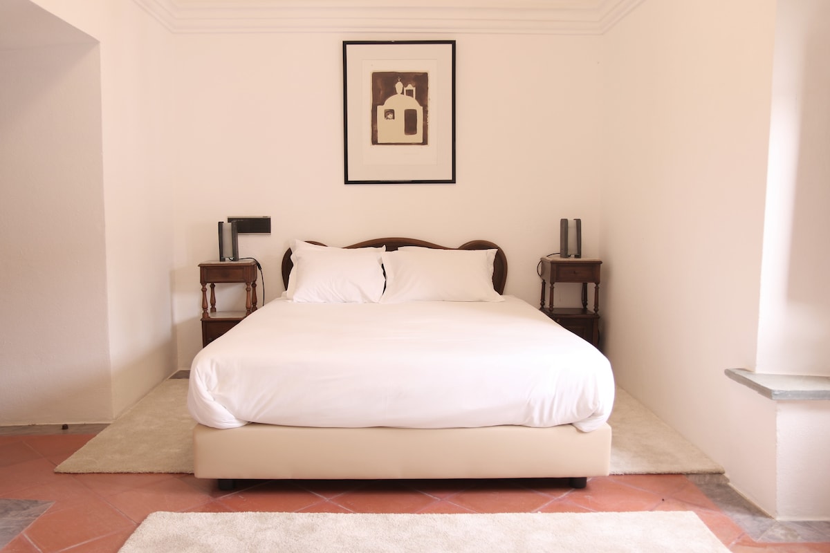 Casa dos Condes is an old Manor House that transport us back in time and remind us of the blissful childhood years of venturing into a place filled with magic and secrets. Untouched by time, this charming village is situated in the heart of Alentejo - known for its sun-sapped landscape of dry earth and olive trees. Apart Valenças is located on the first floor with access to the varanda and swimming pool. It has 2 bedroom and a living room with fireplace that can accommodate up to 4 guests.