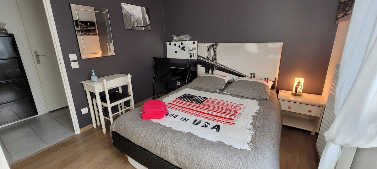 Studio de standing, entièrement équipé. Il dispose d’un grand balcon avec une vue rare sur plusieurs massifs. Idéal pour un séjour cocooning, au calme. Il est situé dans un quartier sécurisé (gendarmerie en face), à environ 30 minutes à pied du centre ville et quelques arrêts de bus (10 mins)