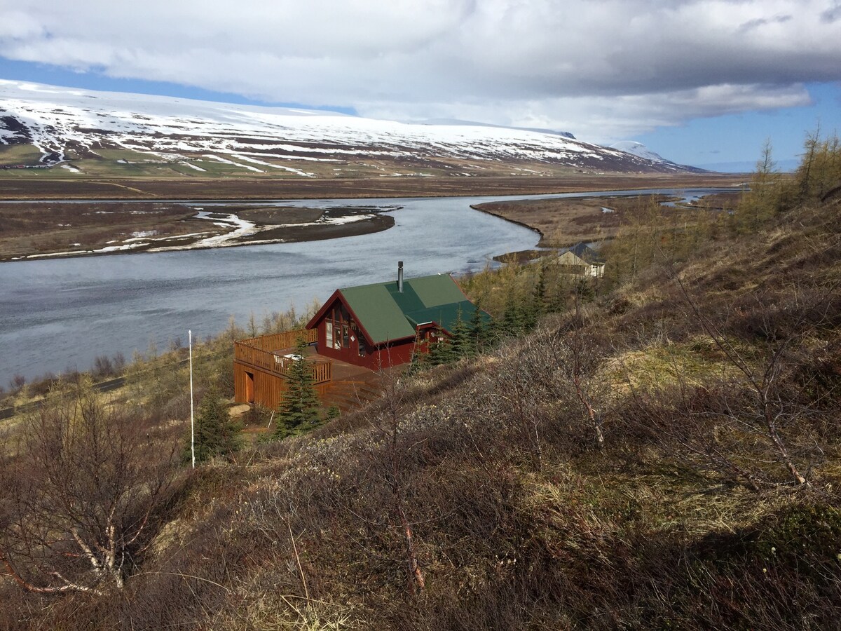 Esta moderna casa de campo clásica ofrece unas vistas inmejorables del Fnjóskadalur. La cabaña tiene 50 m2, tendrás una gran terraza y un campo donde puedes recargar tu energía. Relájate en el jacuzzi con agua geotérmica y disfruta de la naturaleza, sintiendo el poder del río Fnjóska fluyendo junto a la cabaña. La zona tiene unas rutas de senderismo fantásticas cerca. También hay cascadas, volcanes activos y lugares de pesca a poca distancia. Excursión de un día al Parque Nacional Jökulsárgljúfur, la cascada Dettifoss y Mývatn.