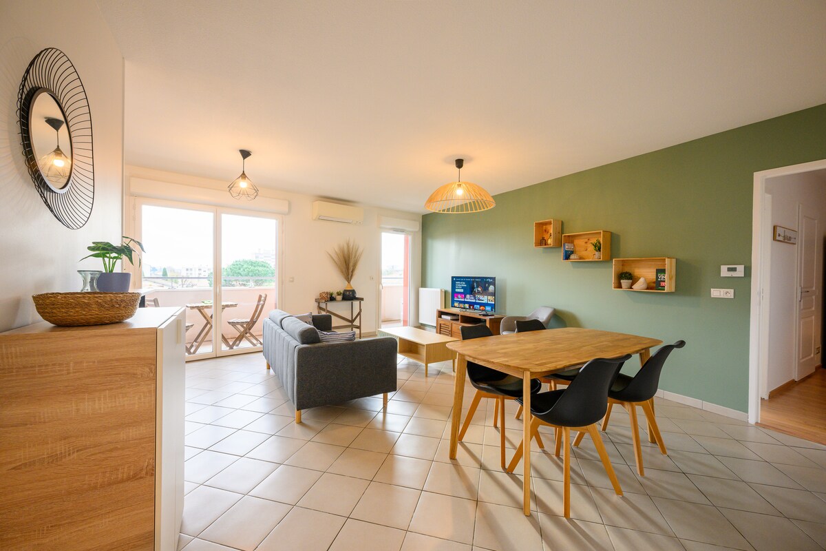 Appartement cosy et lumineux en résidence calme et sécurisée aux portes de Bordeaux Caudéran. Grande terrasse aménagée, climatisation, literie haut de gamme, wifi fibre rapide pour un séjour confortable. Linge en percale, serviettes, Netflix et capsules Nespresso à disposition pour débuter votre séjour. Centre-ville à 20 min en voiture. 2 lignes de bus directes + Tramway à proximité. Bienvenue, posez vos valises et profitez.