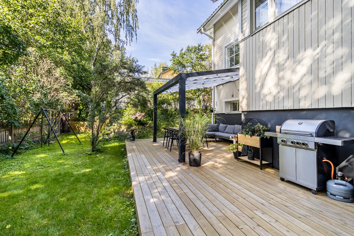 Welcome to a cozy guesthouse in the idyllic and peaceful Tapanila wooden house area! This modern guesthouse is perfect for couples, friends, and small families. The location is excellent, as the train station is only about 700 meters away and by train, you can reach Helsinki city center in 15 minutes and the airport in 10 minutes. This guesthouse also offers a secluded yard where you can park your car. Come and enjoy a wonderful time in this cozy and modern guesthouse in the idyllic Tapanila!