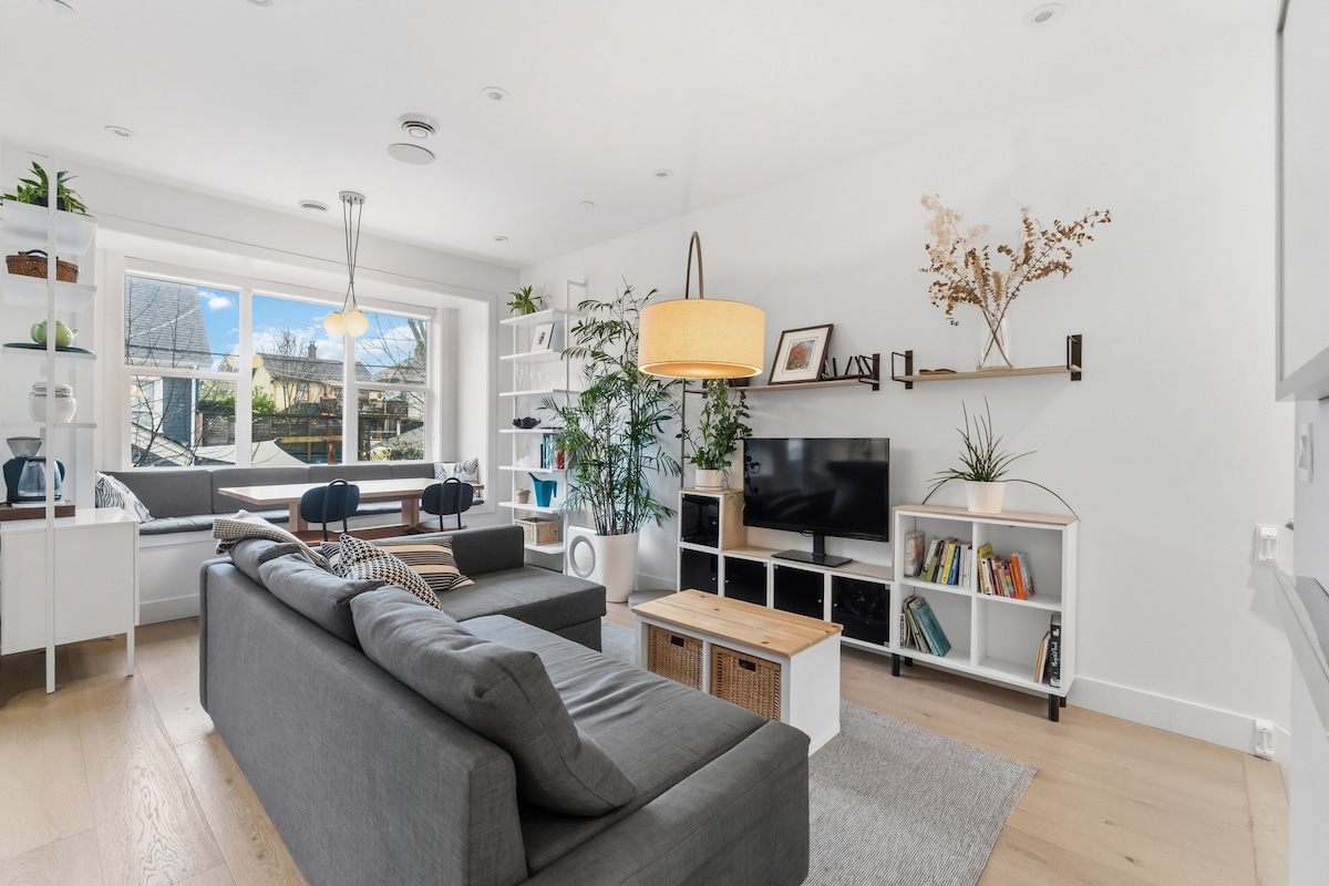 Ranked by Condé Nast as one of Vancouver’s best Airbnbs, stay in this stylish, cool, and comfortable sanctuary in the world's most beautiful city. Welcome to @StayWithJonas ☀︎ Modern 3-BD, 2BT, w/ flex space, & secure parking. Whether you’re here for work or play, you’re just steps from top restaurants, cozy cafés, vintage shops, lush parks, & iconic streets like Fraser & Main. Wake up with a coffee on your private patio, stretch out in the flex office/yoga space, & retreat into paradise.
