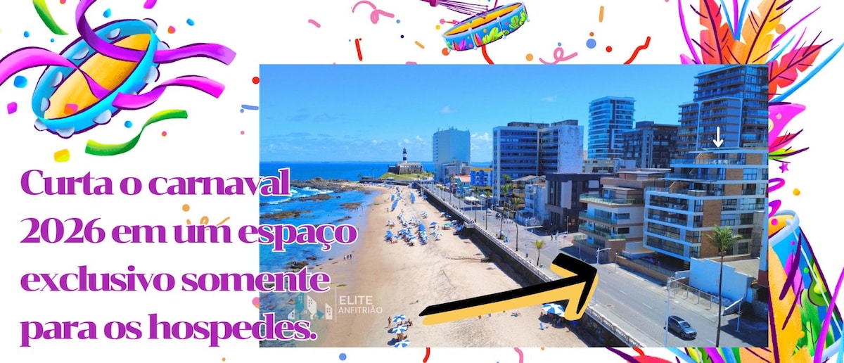 Tiene capacidad para 2 personas. Vista al mar, en la mejor ubicación para el Carnaval, con una vista excepcional de toda la avenida Oceanic hasta el faro de Barra. Edificio moderno con piscina, gimnasio, restaurante Seven Wonders en la planta baja que sirve un delicioso y muy solicitado desayuno (pagado por separado), minimercado, recepción 24 horas y una arquitectura impresionante. Alojarse en esta unidad otorga acceso gratuito al Blue Praia Bar, uno de los mejores clubes de playa de Salvador.