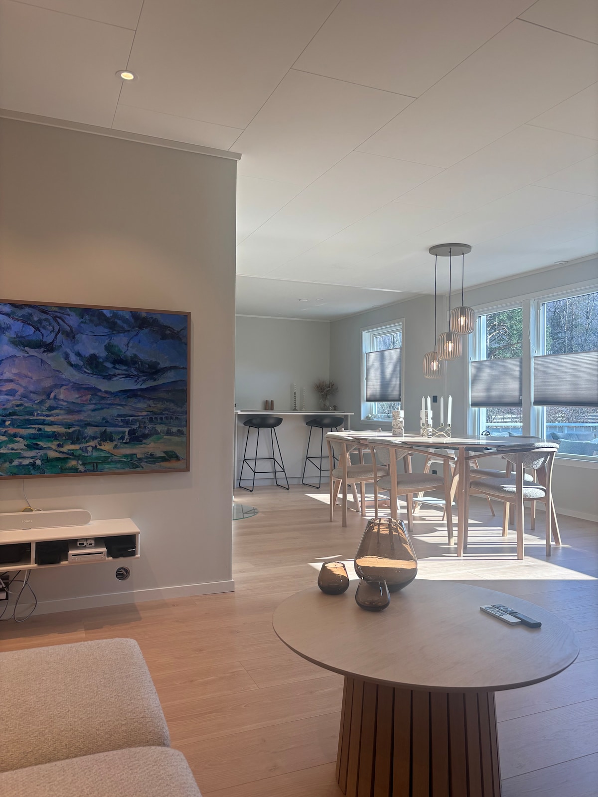 Acogedor apartamento con 3 dormitorios (capacidad para 5 personas: 1 cama doble + 3 camas individuales + cuna). El apartamento está en el segundo piso (un dormitorio en el tercer piso) y tiene sala de estar y cocina de planta abierta, lavadora y cargador de coche eléctrico. Terraza cubierta amueblada y ubicación perfecta entre el fiordo, el río y las montañas, en el centro del municipio ciclista de Saltdal. A solo 2 minutos en tren y a 5 minutos del centro de la ciudad. Saltdal Bike Path comienza justo debajo: ofrecemos préstamos de bicicletas. Los perros a menudo visitan el apartamento, no garantizado contra alergias.