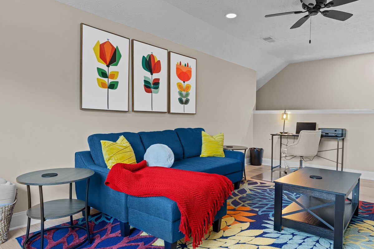 ¿Estás organizando una escapada de fin de semana con amigos o unas vacaciones familiares a gran escala? Esta encantadora casa de 3 dormitorios es el lugar ideal para relajarse y dejar atrás el estrés diario. Nuestro acogedor Botanical BNB tiene capacidad para 6 personas y cuenta con una zona de lavandería, además de un dormitorio apto para niños lleno de juguetes. Ubicada entre árboles frondosos en un barrio tranquilo, esta casa de un solo piso está convenientemente ubicada a pocos minutos de tiendas, restaurantes y servicios locales. Ft. Liberty está a menos de 20 minutos.
