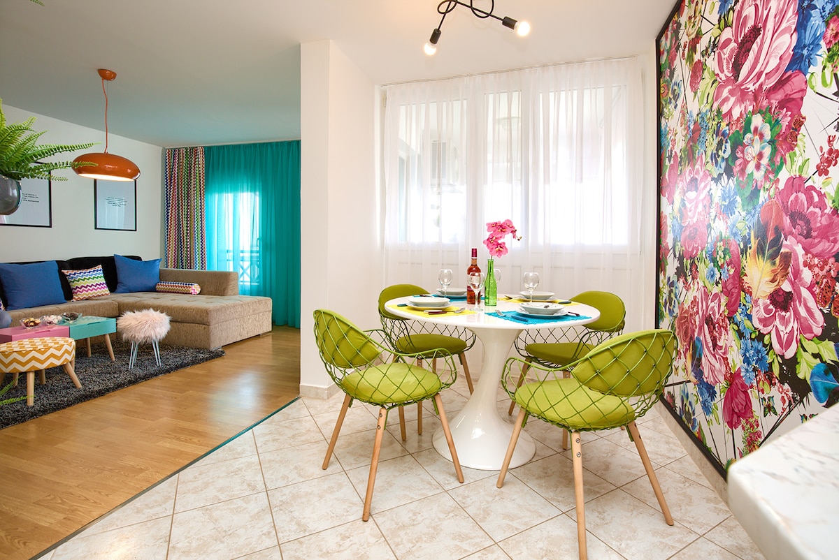 El apartamento "Romantic pop" está situado a pocos minutos de la playa y de la zona de Lungomare, del centro de la ciudad Max (centro comercial) y frente a la nueva piscina, gimnasio y centro de sauna. En el barrio también puedes encontrar oficina de correos, cafeterías, canchas de tenis, restaurantes, etc. y un hospital está a 10 minutos a pie. Para llegar al centro de la ciudad, necesitas 10-15 minutos a pie o en autobús. Si necesitas alguna otra pregunta sobre el apartamento, por favor, sé libre de preguntar, haré todo lo posible para ayudarte :)