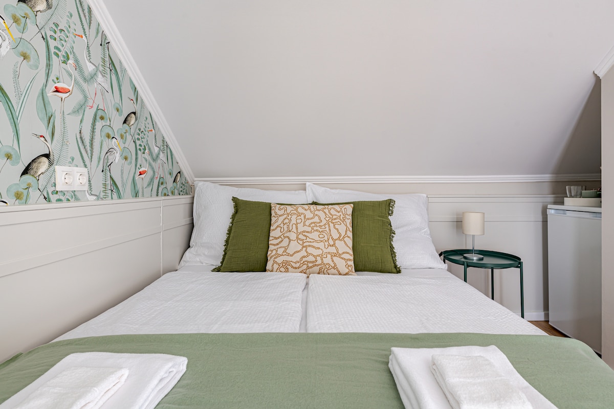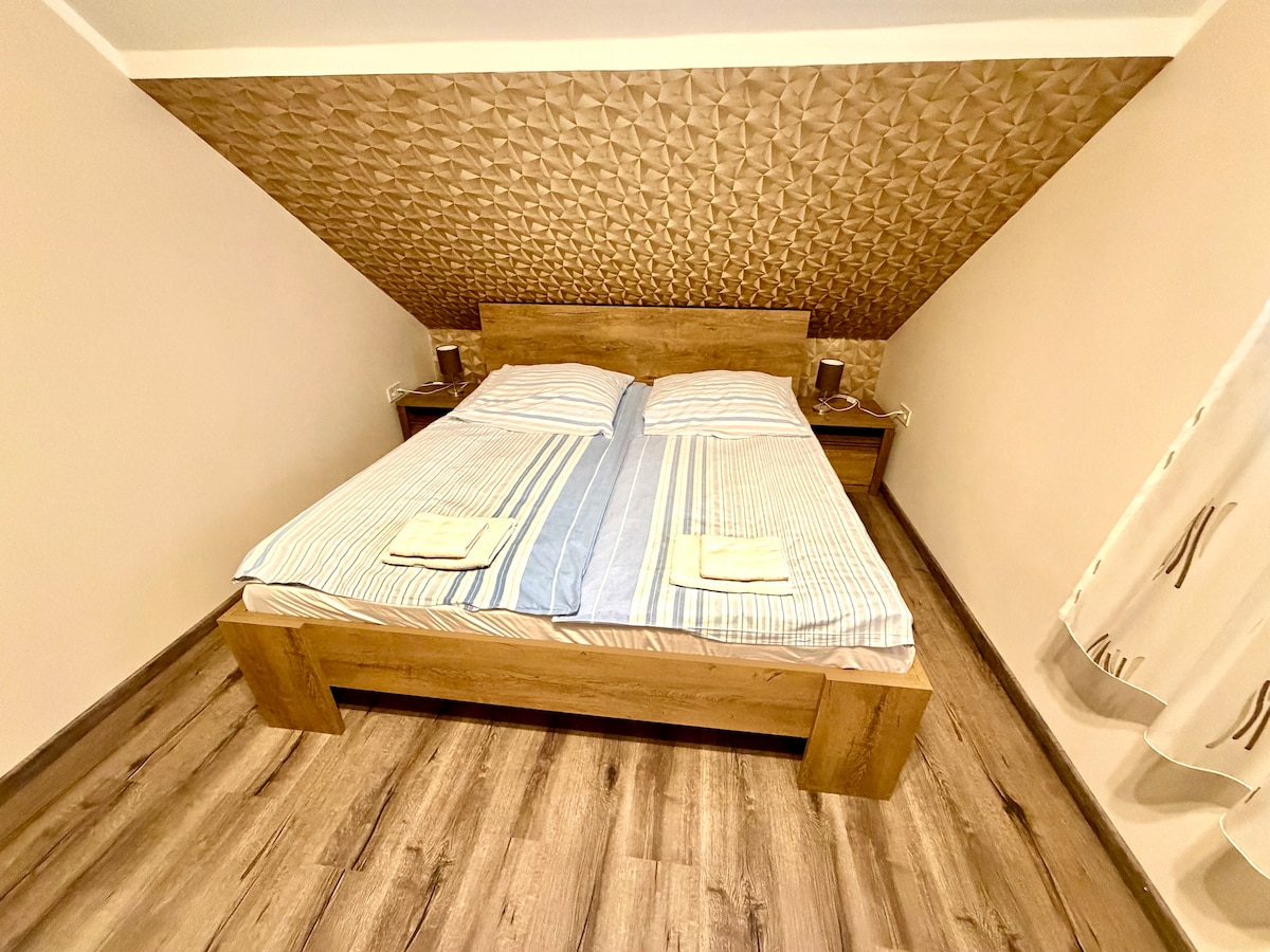 Ven y relájate en nuestra tranquila casa de huéspedes recién remodelada. Un dormitorio con cama de matrimonio, un baño y una pequeña habitación con una pequeña cocina (completa) y un sofá cama. Lavadora y secadora en el baño. La habitación principal tiene aire acondicionado. Aparcamiento asignado más aparcamiento gratuito adicional en la calle. Céntrico, a poca distancia a pie de tiendas, restaurantes y cafeterías, así como de excursiones por la naturaleza. La parada de autobús está a 2 minutos a pie, con autobuses que van directamente a Budapest. Budapest está a unos 10 minutos en coche.