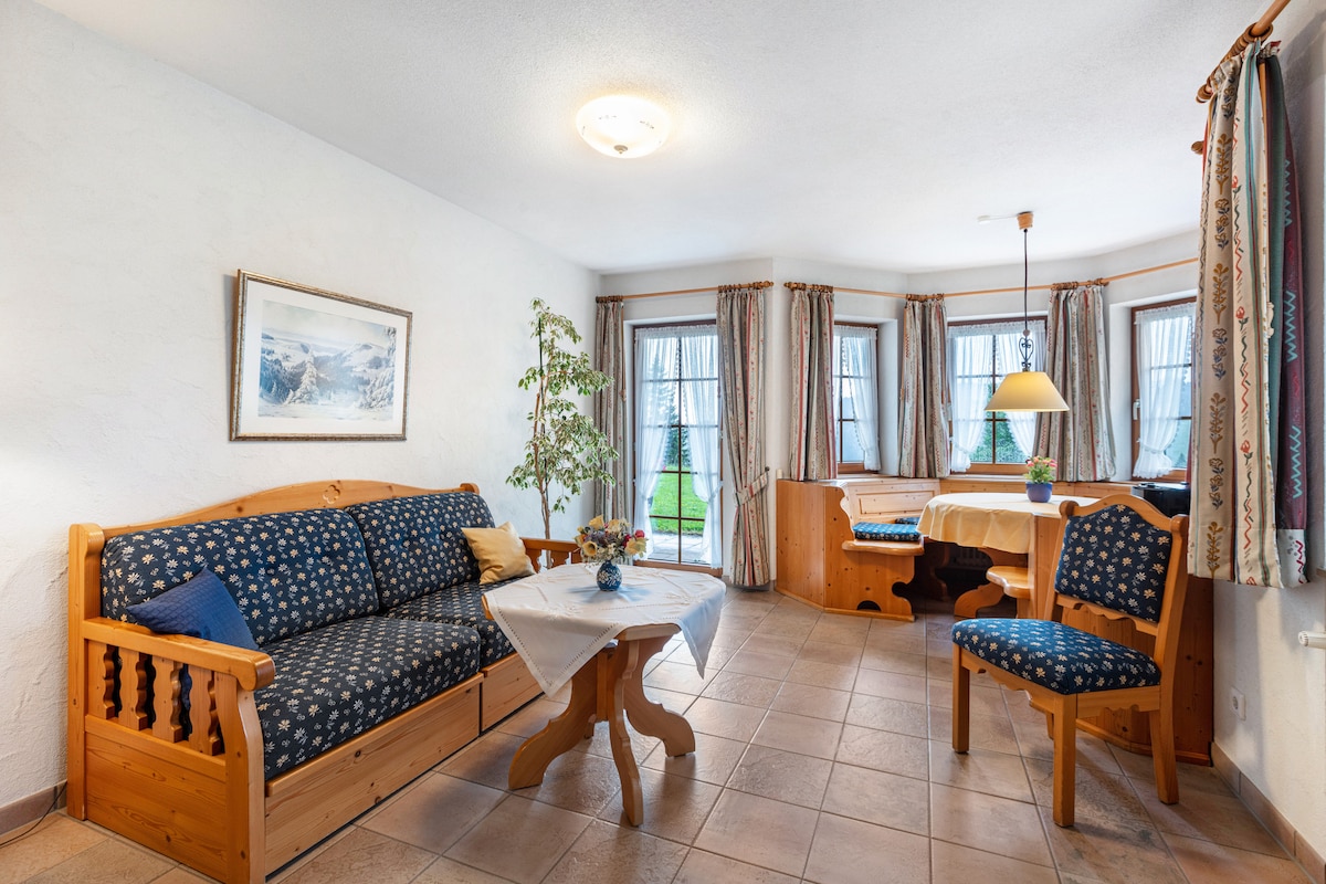 Apartamento amueblado con mucha pasión y atención al detalle. El lugar ideal para relajarse con una acogedora comodidad. Habitaciones amplias, para mucha paz y privacidad. Lo más destacado: la sala de estar tiene su propia chimenea y muchos libros para hojear. Todas las habitaciones están llenas de luz, aire y ligereza. Desde cada habitación se accede directamente a un balcón con vistas a la hermosa naturaleza. Las rutas de senderismo comienzan justo en la casa.