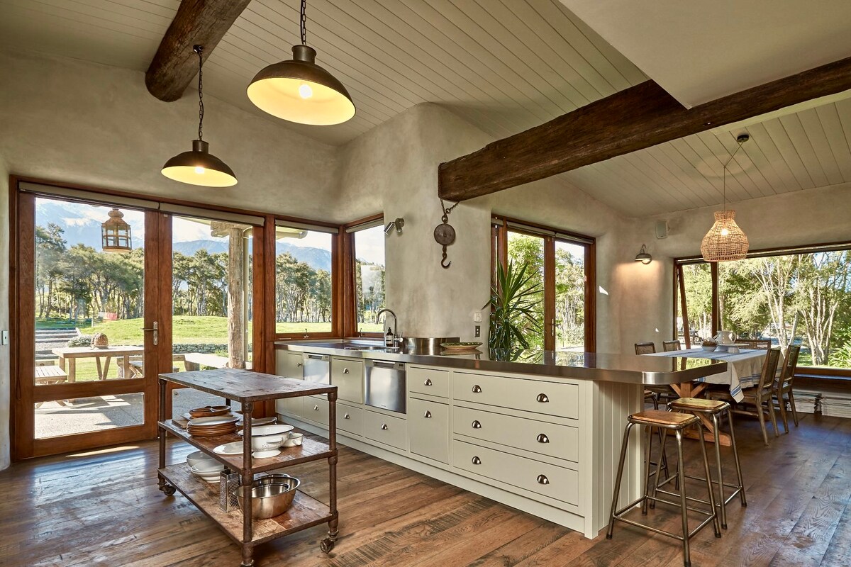 Ubicada justo en el borde, esta impresionante casa ofrece unas vistas inmejorables del océano y de las cadenas montañosas de Kaikōura. Diseñado pensando en el estilo relajado y la comodidad, es el tipo de lugar que se siente especial en el momento en que entras. El salón de planta abierta se abre a un balcón bañado por el sol, perfecto para tomar café, vino y todo lo demás. Tanto si vienes a explorar como a relajarte, este es el lugar ideal.