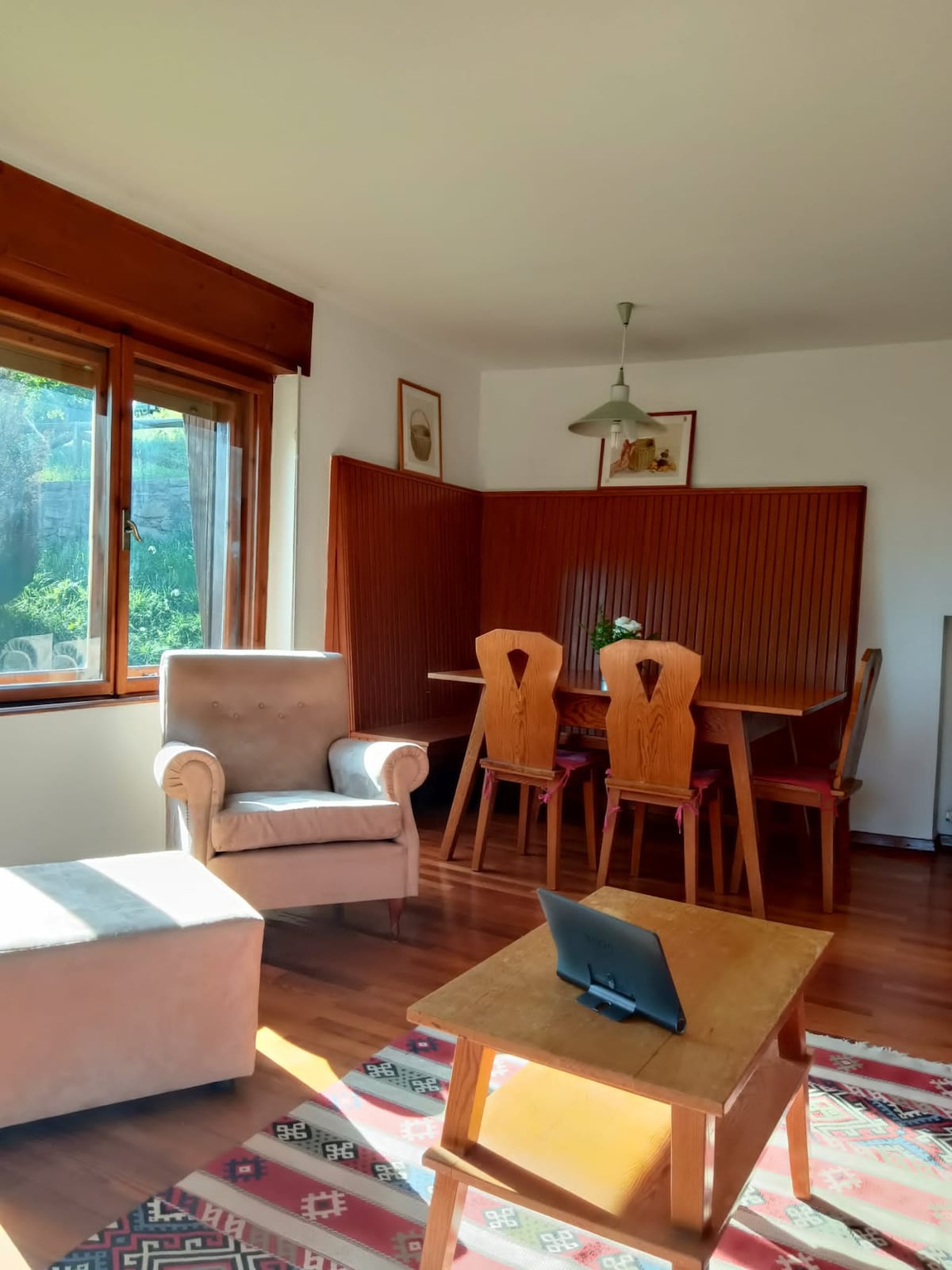 Due stanze da letto, bagno ospiti con doccia multifunzione, zona giorno composta da cucina con piano cottura a gas, forno, lavastoviglie, micoonde, frigo con celletta freezer, macchina per il caffè, radio, smart-tv e divano. Stanza grande con letto matrimoniale, disponibile anche con letti singoli e piccolo balcone. Altra stanza con finestra letti singoli, disponibile anche matrimoniale. A disposizione degli ospiti posto macchina gratuito esterno su spazio riservato o in piazzetta del paese.