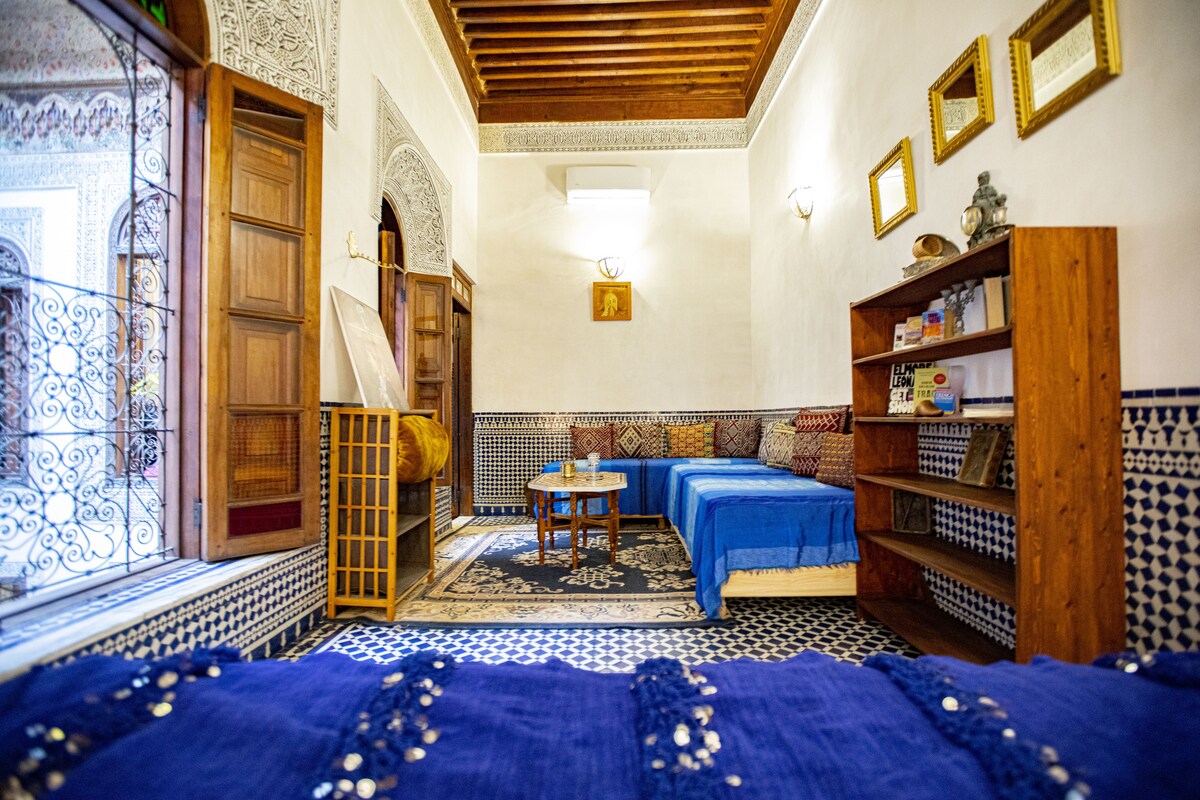 Te damos la bienvenida a nuestro encantador Riad en el corazón de la Medina Fez, propiedad de un artista que ha agregado características elegantes y muebles artesanales. Todo el riad es exclusivamente tuyo y ofrece una mezcla única de encanto tradicional y comodidades modernas.