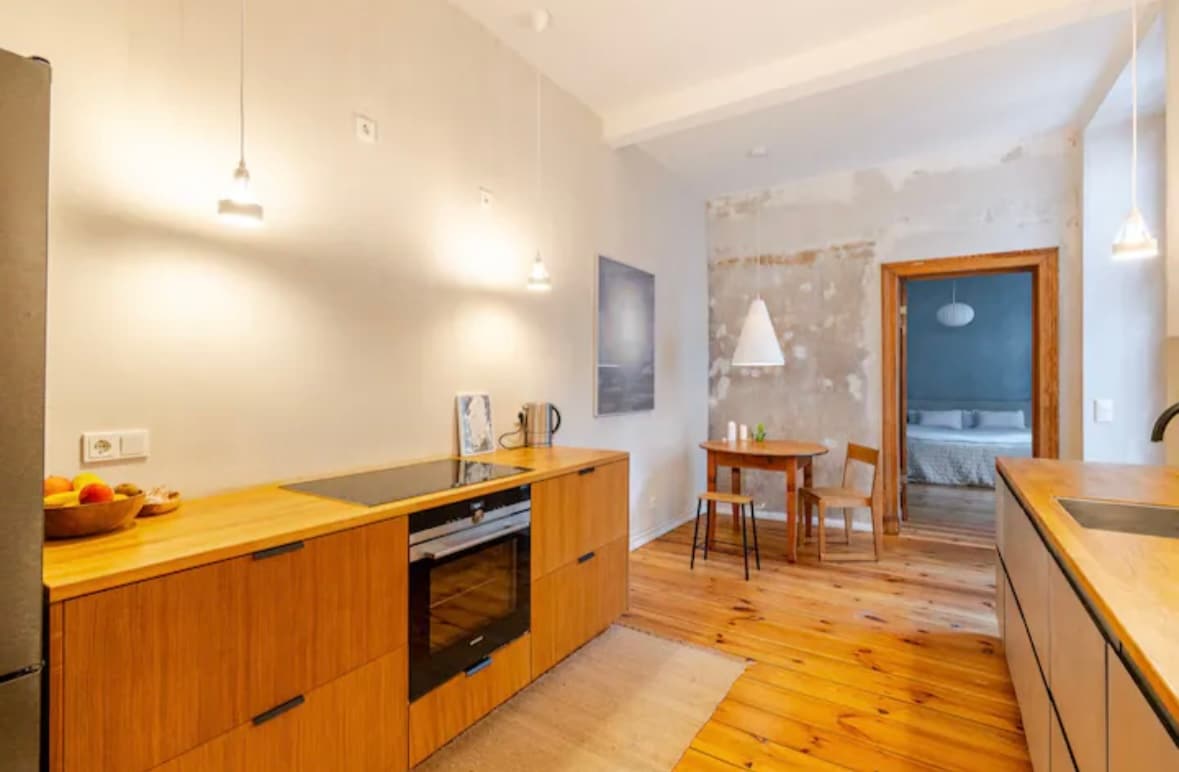 Mi apartamento está situado en el moderno barrio “Prenzlauer Berg”. El departamento está en el primer piso (Amer. 2nd), frente al tranquilo patio interior, bien iluminado a través de dos grandes ventanales franceses. La vista cuenta con una fábrica y estudios restaurados. El área del estudio es de 40 metros cuadrados de tamaño, contiene una cama doble, una mini cocina que contiene todo para relajarse y cocinar. El estudio tiene un pasillo lúcido y un baño de lujo que contiene una ducha y una bañera y un calentador por suelo radiante. La apartamento completo tiene un tamaño completo de 60 metros cuadrados y está amueblada con buen gusto, mezclando notas de diseño modernas y clásicas. Internet rápido disponible. El barrio es muy apreciado y uno de los más a la moda de Berlín. Panaderías, cafeterías, alquiler de bicicletas, parques públicos y un supermercado están en las inmediaciones. El mundialmente famoso “Mauerpark” con sus muchas atracciones y el mercado de huidas (los fines de semana) está a 15 minutos en bicicleta. Sin embargo, la calle es tranquila, situada entre dos grandes bulevares, con un fantástico transporte público a los deportes, así como a otros lugares de interés centrales y barrios, como Alexanderplatz, la East Side Gallery, Mitte, Friedrichshain, etc. Puedes ir caminando hasta el Kastanienallee und Alte Schönhauser Allee, dos modernos bulevares comerciales. Muchos jóvenes viven aquí, ¡estoy seguro de que te encantará! ¡Te encantará!