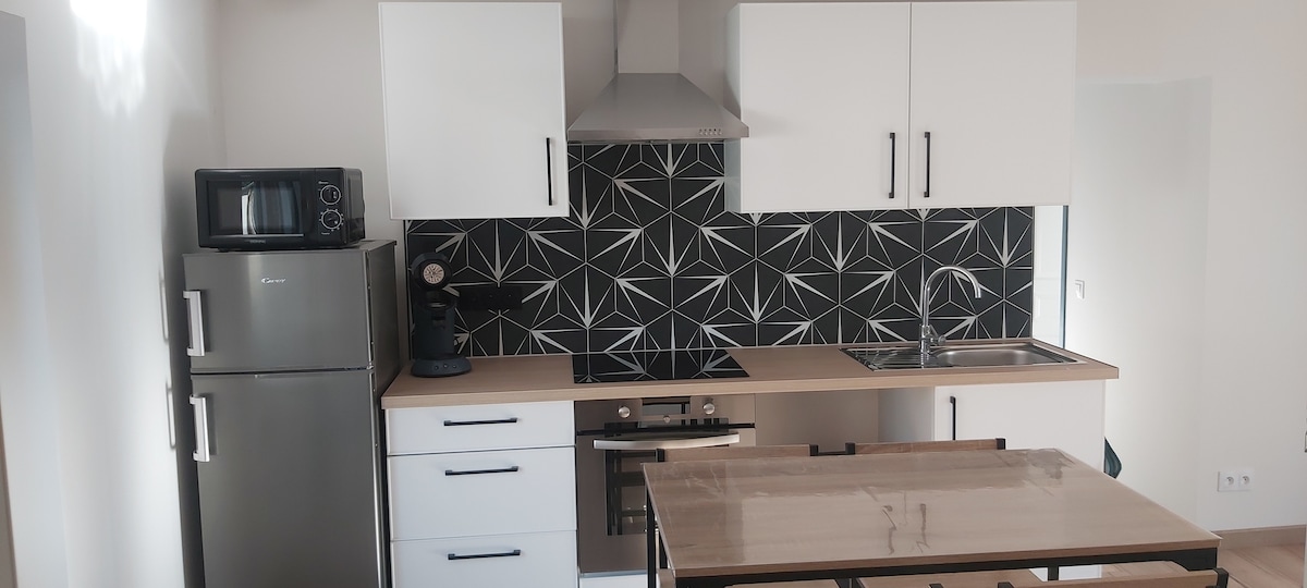Venga a disfrutar de un alojamiento elegante cerca del centro de la ciudad. -Apartamento de 38 m2 en el 1.er piso -Cocina equipada (placa de inducción, horno, nevera, microondas) -Salón con TV conectada, wifi, y sofá cama convertible 140*190 -Habitación con ropa de cama incluida -Cuarto de baño con lavabo, ducha italiana, inodoro y toalla - Llegada por entrada independiente. -El apartamento está situado en pleno centro de la ciudad cerca de cualquier comercio...