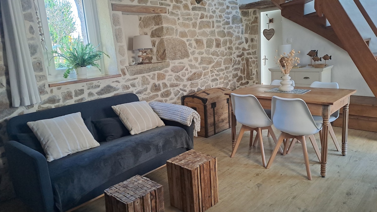 Le Petit Vilar es una antigua dependencia recientemente renovada en un sitio muy tranquilo y arbolado. Todo el alojamiento es de una sola planta. Se encuentra cerca del GR 34 y de numerosos senderos de pequeñas excursiones. La playa más cercana está a unos diez minutos en coche. El pueblo de Locquénolé, con su cafetería, tienda de comestibles, su iglesia románica y barroca y su árbol de la Libertad, está a poca distancia. El alojamiento no incluye televisor, pero está equipado con wifi. Refugio para bicicletas.